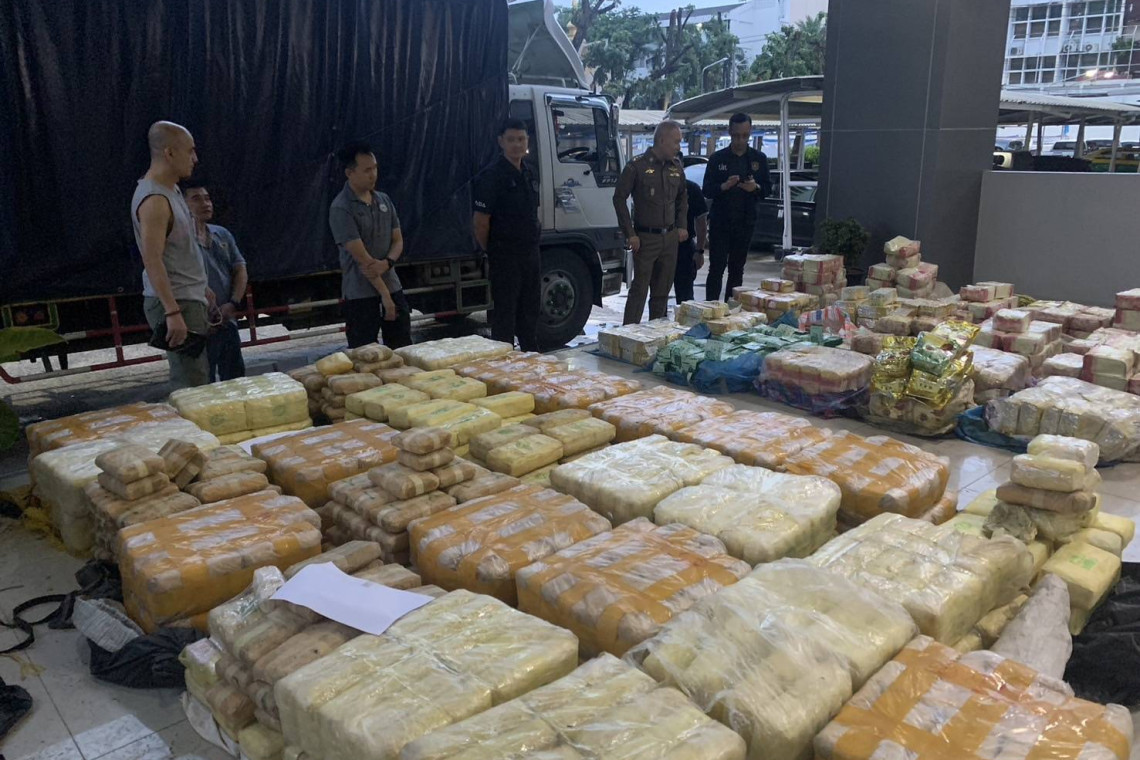 กองบัญชาการตำรวจปราบปรามยาเสพติด โดย พล.ต.ท.คีรีศักดิ์ ตันตินวะชัย ผบช.ปส., พล.ต.ต.สมบูรณ์ เทียนขาว รอง ผบช.ปส. พล.ต.ต.วิทัศน์ บริรักษ์ ผู้บังคับการสกัดกั้นการลำเลียงยาเสพติด, พ.ต.อ.วัสสา วัสสานนท์ รอง ผบก.สกส. และ พ.ต.อ.จักริน พิริยะจิตตะ ผกก.3 บก.สกส.