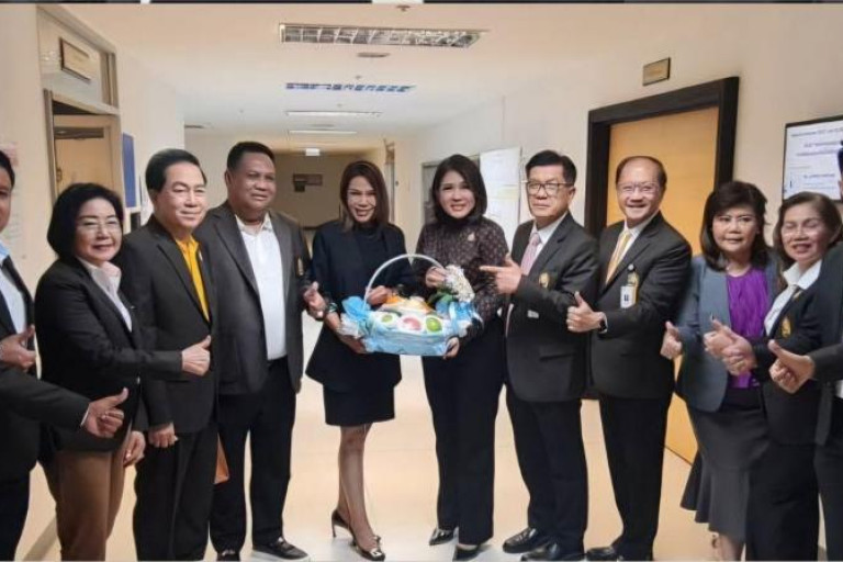 สมาชิกวุฒิสภา ดร.วราภัสร์ ไพพรรณรัตน์ ประธานกลุ่ม 1 หลักสูตรพัฒนาการเมืองและการเลือกตั้งระดับสูง รุ่นที่ 14 พร้อมคณะมอบกระเช้าแสดงความยินดีกับ นางสาวอรรฆยา พลตื้อ กรรมการผู้จัดการ บริษัท วิชั่นกลาส แอนด์ ดอร์ อินดัสเทรียล จำกัด และ บริษัท วิชั่นกลาส อิดร์สทรีส์ จำกัด นักศึกษาหลักสูตรการพัฒนาการเมืองและการเลือกตั้งระดับสูง รุ่นที่ 14 ในโอกาสรับรางวัลผู้สนับสนุนดีเด่นของโครงการผู้นำอวกาศระดับโลก GLOBAL SPACE LEADERSHIP PROGRAM ภายใต้คอนเซ็ปต์ เน้นการเข้าถึงพื้นที่สำหรับทุกคน Space Access for All