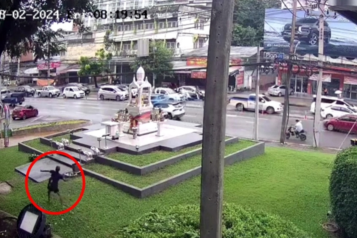ล่าสุด เผยภาพวงจรปิดนาทีนายทองจันทร์คลั่งวิ่งทำร้าย รปภ. โดยเริ่มต้นจากเวลา 08.18 น.จะเห็นนายทองจันทร์ ใส่เสื้อผ้าสีดำสะพายกระเป๋าเดินอยู่ตรงหน้าร้านแมคโนนัลค์ ในภาพจะดูเหมือนนายทองจันทร์โวยวายอาละวาดโดยสิ่งของไปด้วย จากนั้นก็เดินไปตรงหน้าศาลพระพรหม เดินรอบอยู่สักพักแล้วหันกลับ ในมือจะเห็นขว้างอะไรออกไป ไม่นานก็เห็นวิ่งเข้าใส่ รปภ. ส่วนนายสิทธิ ที่เป็นคนสวนคว้าได้กรวยสีส้มที่ใช้สำหรับจอดรถสู้กับนายทองจันทร์ ด้วย แล้วก็เห็น หน.รปภ.กระโดดเข้าใส่ช่วยกันจับตัว แต่นายทองจันทร์ ยังไม่สิ้นฤทธิ์พยายามใช้มีดจ้วงแทง รปภ.และนายสิทธิ คนสวน ในที่สุดก็พากันจับเอาไว้ได้ ไม่นานก็เห็น ตร.สายตรวจ สภ.เมืองอุดรธานีและกู้ภัยส่งเสริมธรรม เดินทางมาถึงที่เกิดเหตุและนำตัวไปยัง สภ.เมืองอุดรธานี