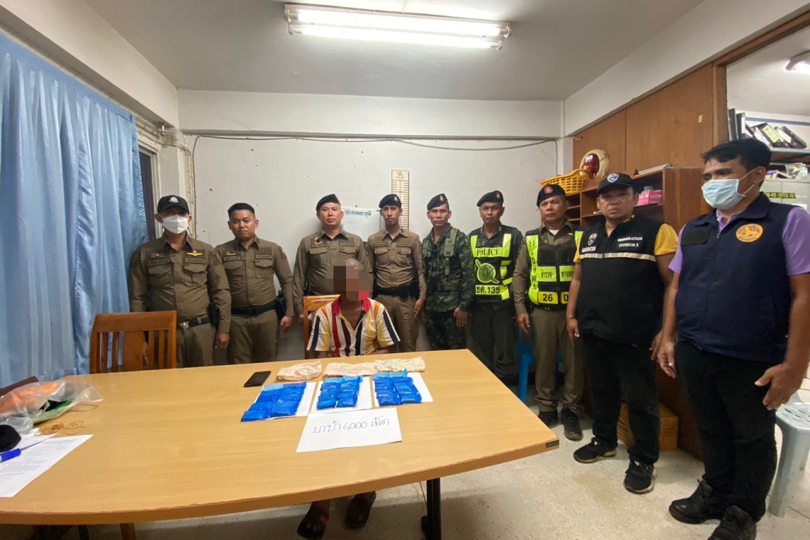 ตร.ทองผาภูมิ กาญจน์ ตาไว ร่วมกับ จนท.ด่านความมั่นคง สนธิกำลังจับ "ตองเส็ง" เอเย่นต์ยาบ้าชาวมอญ ได้ของกลางซุกรถ 6,000 เม็ด เตรียมส่งลูกค้า ต.บ้านเก่า เมืองกาญจน์