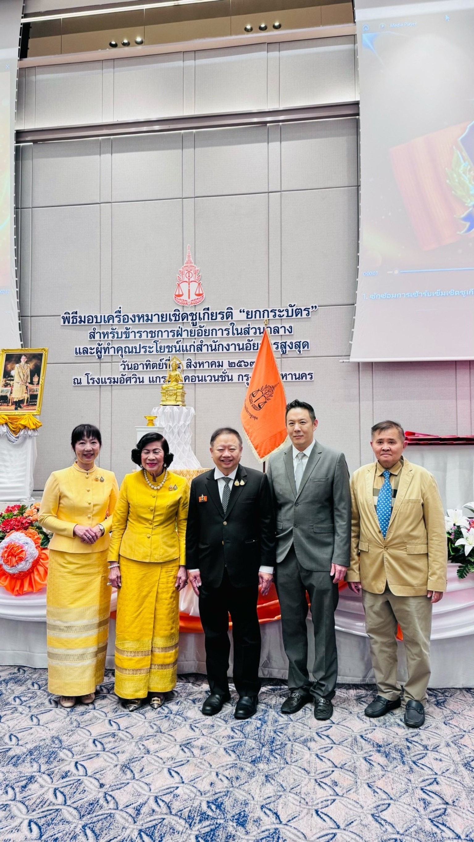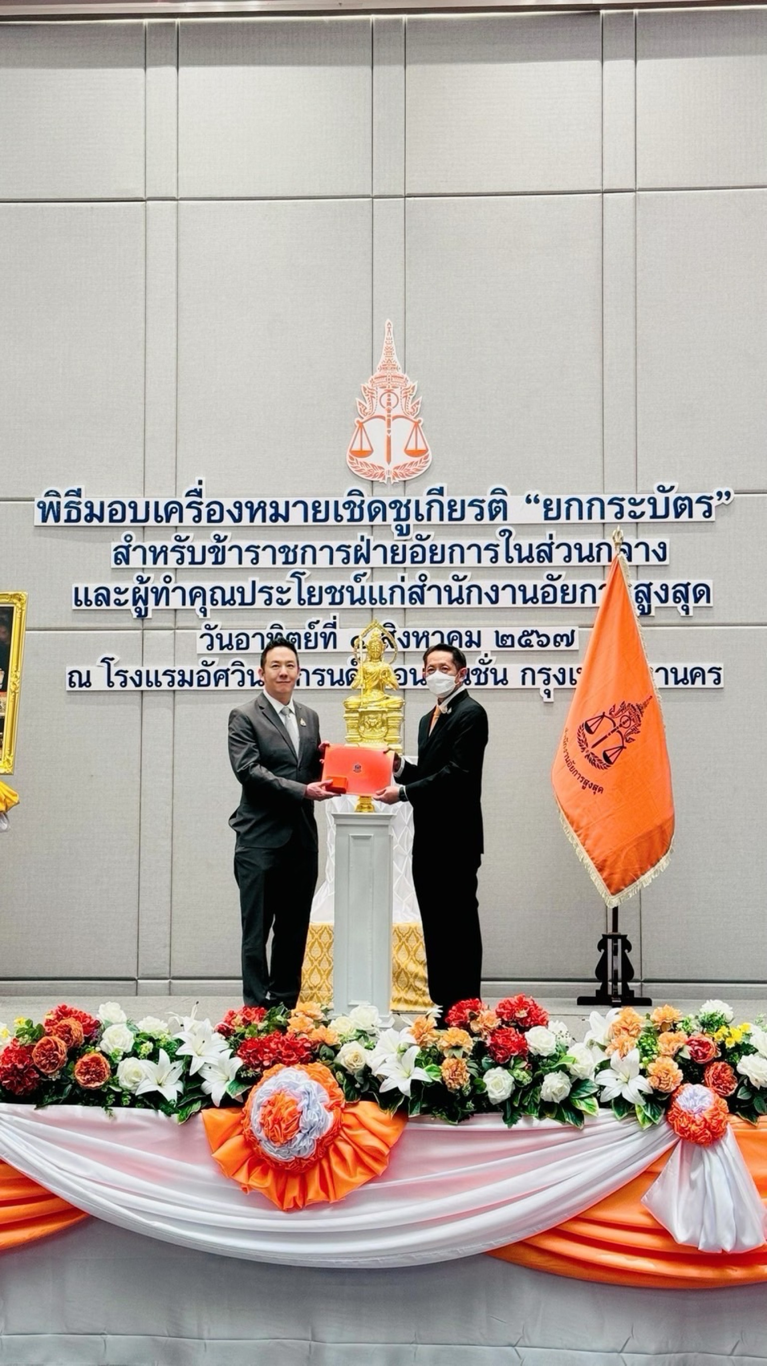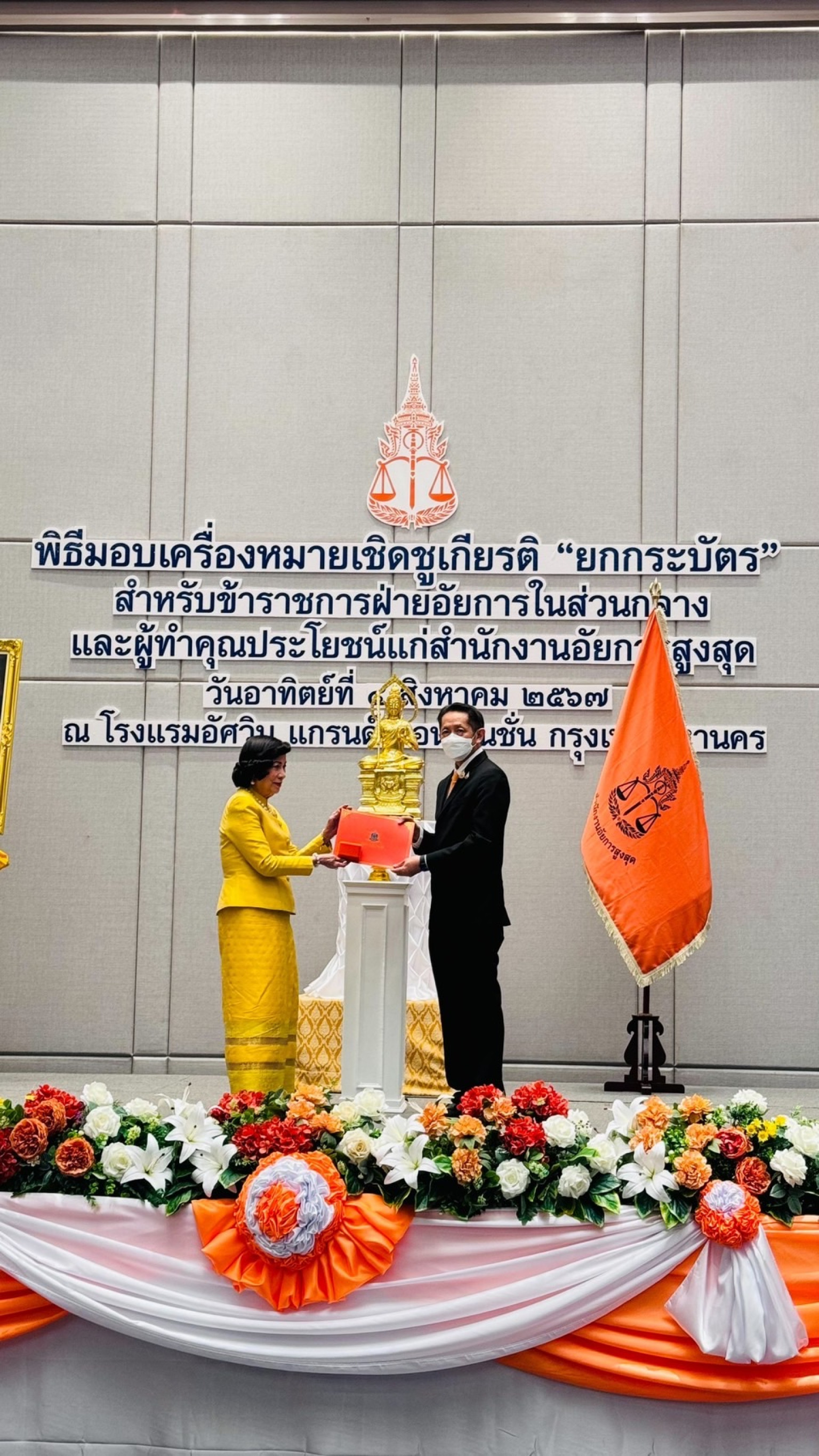 เมื่อวันที่ 4 สิงหาคม 2567 ณ ห้องประชุมแกรนด์บอลรูม รร.อัศวิน ถ.วิภาวดี ท่านอำนาจ เจตน์เจริญรักษ์ อัยการสูงสุด เป็นประธานมอบเครื่องหมายเชิดชูเกียรติ “ยกกระบัตร“ ให้แก่ ดร.ศุลีมาศ สุทธิสัมพัทน์ รองประธานกรรมการ บริษัท ยูไนเต็ดฟู้ดส์ จำกัด ( มหาชน) นายธีร์รัถต์ สุทธิสัมพัทน์ รองประธานกรรมการ บริษัท ยูไนเต็ดฟู้ดส์ จำกัด ( มหาชน ) โดยครอบครัว “สุทธิสัมพัทน์” ผู้ทำคุณประโยชน์แก่สำนักงานอัยการสูงสุด มาตลอดเวลาอย่างต่อเนื่อง โดยมีท่านจุมพล พันธ์สัมฤทธิ์ ท่านสุรจิต พัฒนสาร ดร.อดิศร ไชยคุปต์ ท่านจิระประวัติ แบบประเสริฐ รองอัยการสูงสุด ให้เกียรติร่วมงาน