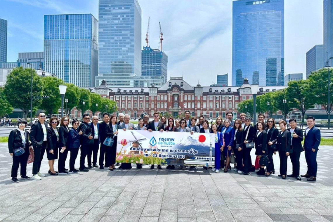 บริษัท กรุงเทพประกันชีวิต จำกัด (มหาชน) นำโดย นายจักรพงศ์ แสงแก้ว (ยืนกลาง) ผู้อำนวยการอาวุโส สายงานตัวแทนและที่ปรึกษาทางการเงิน และ นายรชฎ เอกรัตน์ (แถวหลังยืนกลาง) ผู้อำนวยการอาวุโส ฝ่ายปฏิบัติการและสนับสนุนการขายตัวแทนและที่ปรึกษาทางการเงิน นำทีมผู้บริหารตัวแทนประกันชีวิตและที่ปรึกษาทางการเงิน ระดับ TOP จำนวน 30 ท่าน ร่วมเยี่ยมชมศึกษาดูงาน บริษัท นิปปอนไลฟ์ อินชัวรันส์ จำกัด (Nippon Life) ณ สำนักงานใหญ่ กรุงโตเกียว ประเทศญี่ปุ่น เมื่อปลายเดือนมิถุนายน 2567 ที่ผ่านมา