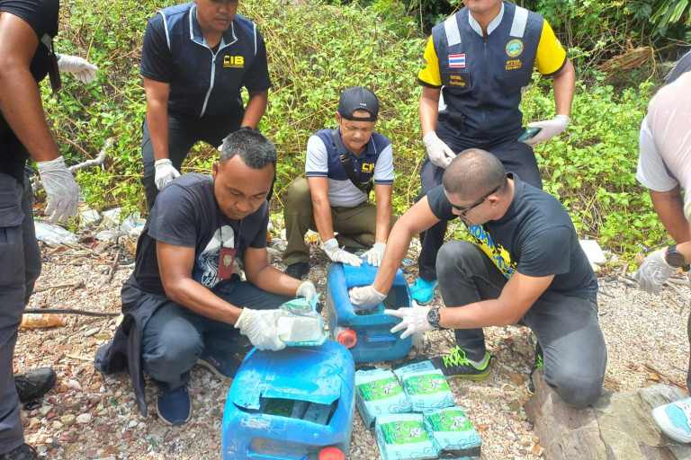 วันที่ 6 สิงหาคม 2567 เจ้าหน้าที่ปราบปรามยาเสพติดจังหวัดสตูล พร้อมสนธิกำลังหลายฝ่ายทั้ง ตำรวจน้ำสตูล ศรชล.สตูล ทหารเรือ ตชด.436 พร้อมด้วยกำพลังทหารจากกองพันทหาราบที่ 2 กรมทหารราบที่ 5 จังหวัดสตูล ด่านศุลกากรตำมะลัง และ ฝ้ายปกครองจังหวัดสตูล กำลังช่วยกันลำเลียงยาไอซ์ที่ถูกซุกไว้ในถังแกลลอนน้ำมัน 30 ลิตร ( สีน้ำเงิน ) 2 ถัง ซึ่งพบว่าข้างในแต่ละถังมียาไอซ์ถูกแพ็กไว้อย่างละ 1 กิโลกรัม จำนวน 5 ถุง ได้ถูกนำไปวางไว้ตั้งแต่ก่อนรุ่งฟ้าสาง ใกล้ริมชายหาดในพื้นที่ หมู่ที่ 1 บ้านเกาะยาว ตำบลปูยู อำเภอเมือง จ.สตูล ห่างจากเสาโทรศัพท์ไม่มากนัก เจ้าหน้าที่ชุดจับกุมจึงได้นำของกลาง ยาไอซ์ทั้ง 2 แกลลอน น้ำหนัก 10 กิโลฯ ของกลางถูกควบคุมมาขึ้นเรือตรวจการณ์ของตำรวจน้ำ มาขึ้นฝั่งที่บริเวณที่ท่าเทียบเรือตำรวจน้ำ และได้นำของกลางดังกล่าวไปที่ ตชด.436 สตูล