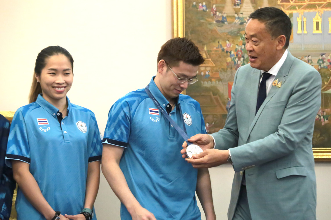 เมื่อเวลา 12.45 น. วันที่ 7 ส.ค. ที่ห้องสีม่วง ตึกไทยคู่ฟ้า ทำเนียบรัฐบาล นายเสริมศักดิ์ พงษ์พานิช รมว.การท่องเที่ยวและกีฬา นำคณะเจ้าหน้าที่และผู้แทนนักกีฬาที่เข้าร่วมการแข่งขันกีฬาโอลิมปิก 2024 ณ กรุงปารีส สาธารณรัฐฝรั่งเศส เข้าพบ นายเศรษฐา ทวีสิน นายกรัฐมนตรี โดยมี "วิว" ส.ต.ท.กุลวุฒิ วิทิตศานต์ นักแบดมินตัน ซึ่งได้รับเหรียญเงิน “เมย์” รัชนก อินทนนท์ นักแบดมินตันหญิง และทีมนักกีฬาแบดมินตัน รวมถึงคณะผู้ฝึกสอน
