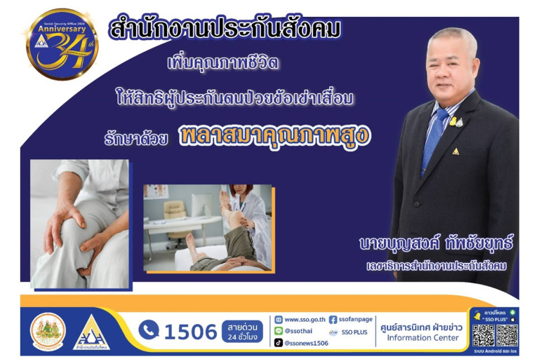 เช็กที่นี่! "ประกันสังคม" เพิ่มคุณภาพชีวิตให้สิทธิผู้ประกันตนป่วยข้อเข่าเสื่อมรักษาด้วยพลาสมาคุณภาพสูงได้แล้ว