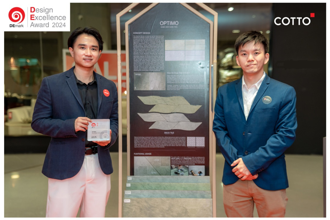 บริษัท เอสซีจี เซรามิกส์ จำกัด (มหาชน) ผู้ผลิตและจำหน่ายกระเบื้อง ‘COTTO’ ร่วมกับบริษัทสยามซานิทารีแวร์ จำกัด ผู้ผลิตและจำหน่ายสุขภัณฑ์และก๊อกน้ำ ‘COTTO’ ประกาศความสำเร็จ คว้า 2 รางวัลจากโครงการ ‘รางวัลการออกแบบยอดเยี่ยม ปี 2567 (Design Excellence Award : Demark 2024)’ จัดโดยกรมส่งเสริมการค้าระหว่างประเทศ (DITP) กระทรวงพาณิชย์ ตอกย้ำความเป็นผู้นำด้านนวัตกรรมและดีไซน์ของผลิตภัณฑ์กระเบื้องและสุขภัณฑ์ เพื่อการสร้างสรรค์ที่อยู่อาศัยที่ให้ความสำคัญกับความยั่งยืน โดย COTTO คว้ารางวัลกลุ่มสินค้าอุตสาหกรรมและเทคโนโลยีจากผลิตภัณฑ์ ‘กระเบื้อง OPTIMO SERIES’ ที่สื่อถึงผูกพันระหว่างมนุษย์และสัตว์เลี้ยงที่ถ่ายทอดออกมาเป็นลวดลายกระเบื้องที่น่าทึ่ง
