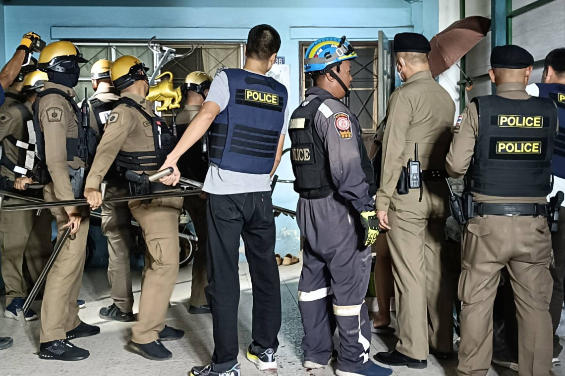 ต่อมา เจ้าหน้าที่ ได้ร้องขออุปกรณ์เพื่อตัดประตูเข้าไป และได้บุกเข้าบ้านใช้อุปกรณ์ตัดกุญแจ เพื่อพังประตูเข้าไป แล้วชายคุ้ม คลั่งดังกล่าวได้วิ่งขึ้นไปบนบ้านชั้น 2 และได้ลงมาชั้นล่าง จากนั้นเจ้าหน้าที่ตำรวจได้พังประตูเข้าไป ซึ่งในขณะนั้นก็ยังเกลี้ยกล่อมและได้บุกชาร์จจนสำเร็จ หลังจากที่นำชายออกมาจากบ้าน ชายคนดังกล่าวสามารถควบคุมสติอารมณ์ได้แต่ยังอะโวยวายคล้ายกับคนเสพสารเสพติด ทราบชื่อ นายแบงค์ อายุประมาณ 35 ปี