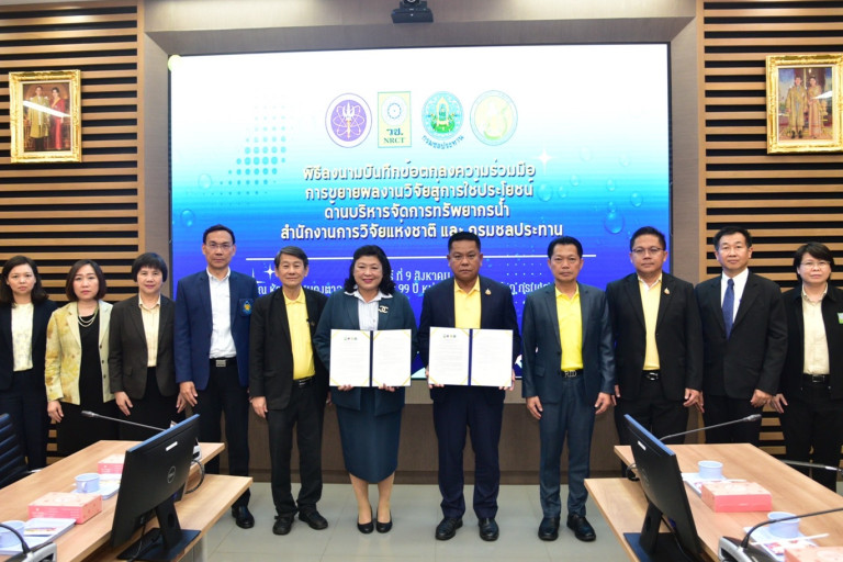 เมื่อวันที่ 9 ส.ค.2567 สำนักงานการวิจัยแห่งชาติ (วช.) กระทรวงการอุดมศึกษา วิทยาศาสตร์ วิจัยและนวัตกรรม โดย ดร.วิภารัตน์ ดีอ่อง ผู้อำนวยการสำนักงานการวิจัยแห่งชาติ พร้อมด้วย นายชูชาติ รักจิตร อธิบดีกรมชลประทาน ร่วมลงนามบันทึกข้อตกลงความร่วมมือ “การขยายผลงานวิจัยสู่การใช้ประโยชน์ด้านบริหารจัดการทรัพยากรน้ำ” เพื่อร่วมมือกันขับเคลื่อนและขยายผลงานวิจัยด้านการบริหารจัดการน้ำของประเทศ ณ ห้องประชุมดงตาล ชั้น 4 อาคาร 99 ปี หม่อมหลวงชูชาติ กำภู กรมชลประทาน