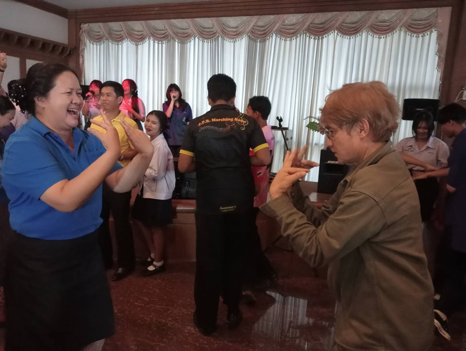 อย่างไรก็ตาม ในการทำหน้าที่วิทยากรของหรั่ง ร็อคเคสตร้า ศิลปินเพลงร็อคยุค 90 ที่ยังครองความนิยมไม่เสื่อมคลายจากหลายเพลงฮิต ยังได้ฟิทเจอริ่งเพลง “คิดถึง” กับ “ไข่มุก” นางเฉลิมขวัญ หล่อตระกูล นายก อบจ.กาฬสินธุ์ ก่อนที่จะนำครู นักเรียน ร่วมขับร้องและเปลี่ยนแนวเพลงจากร็อค เป็นเพลงลูกทุ่งและหมอลำอีสานอีกหลายบทเพลง บรรยากาศเต็มไปด้วยความความครึกครื้น สนุกสนานเป็นอย่างมาก