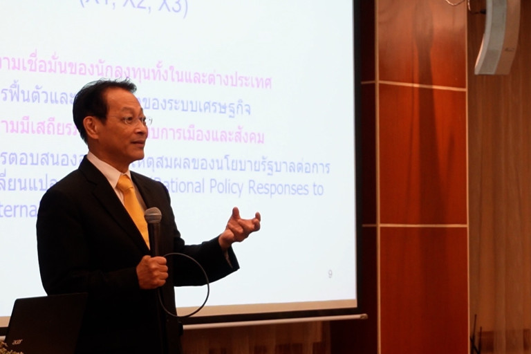 ทั้งนี้ เศรษฐกิจในระดับประเทศ ประกอบด้วย 1. นโยบายการคลัง (Fiscal policy) 2. นโยบายการเงิน (Monetary policy) 3. นโยบายอัตราแลกเปลี่ยน (Exchange Rate policy) สำหรับประเทศไทย การที่เศรษฐกิจของประเทศตกต่ำอยู่ทุกวันนี้ เป็นเพราะความสามารถในการผลิตของเราต่ำ สินค้าของเรา ขายสู้ต่างประเทศไม่ได้ เนื่องจากมีราคาแพง เหตุจากค่าเงินบาทของเราแข็งเกินไป และค่าเงินบาทของไทยแข็งต่อเนื่องมานานนับสิบปี ถ้าปล่อยไปอย่างนี้ จะทำให้จะทำให้การเจริญเติบโตของเศรษฐกิจไทย ไม่สมหวังตามที่คาดการณ์ว่า GDP จะเติบโตร้อยละ 2-3