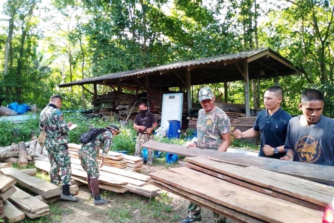 สอบปากคำชายคนดังกล่าวให้การว่าร่วมกับพรรคพวกคนหนึ่งตัดไม้และช่วยกันขนมาไว้ที่ขนำ จึงนำตัวชายคนดังกล่าวไปชี้จุดที่มีการแปรรูป มีการโค่นล้มต้นไม้นาดใหญ่ ขณะนำตัวชายคนดังกล่าวกลับมาตรวจค้นที่ขนำอาศัยความชำนาญเส้นทางวิ่งหลบหนีเจ้าหน้าที่ไปได้ ตรวจดูภายในขนำพบอาวุธปืนไทยประดิษฐ์ (ปืนอัดแก๊ส) จำนวน 1 กระบอก กระสุนปืนลูกซอง 6 นัด อุปกรณ์การเสพ และโทรศัพท์มือถืออีก 1 เครื่อง ตรวจสอบโทรศัพท์มือถือพบหลักฐานการก่อสร้างขนำก่อนที่เจ้าหน้าที่จะตรวจพบ มีภาพไม้แปรรูปขนาดใหญ่ที่มีการทำเป็นโต๊ะ ซึ่งแสดงว่าชายคนดังกล่าวมีพฤติกรรมในการแปรรูปไม้ในพื้นที่มาโดยตลอด เจ้าหน้าที่จึงได้ทำบันทึกตรวจยึดของกลางทั้งหมดนำส่งพนักงานสอบสวน สภ.บางสะพาน และเร่งติดตามจับตัวชายคนดังกล่าวกับพวกมาดำเนินคดีตามกฎหมายต่อไป