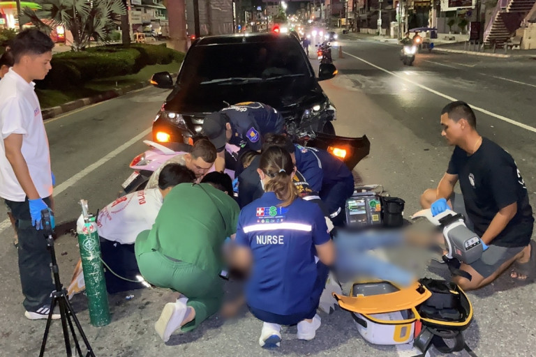 ข้างกันพบรถจักรยานยนต์ ฮอนด้า สกู๊ปปี้ไอ สีชมพู ทะเบียน 2กศ xxxx ชลบรี ของผู้บาดเจ็บ ถูกรถยนต์กระบะยี่ มิตซูบิชิ ไททัน สีดำ ทะเบียน จต xxxx ชลบุรี สภาพด้านหน้าพังยับเยิน มีนายไพโรจน์ อายุ 45 ปี เป็นคนขับยืนรอให้การกับเจ้าหน้าที่ พร้อมเล่าเหตุการณ์ว่า ตนขับรถมาตามถนนสุขุมวิท มุ่งหน้าไฟแดงพัทยาใต้ จู่ๆ รถจักรยานยนต์ ขี่ย้อนศรมากลางถนนอย่างกะทันหัน ทำให้ตนเบรคไม่ทันจึงพุ่งชนเข้าอย่างจัง