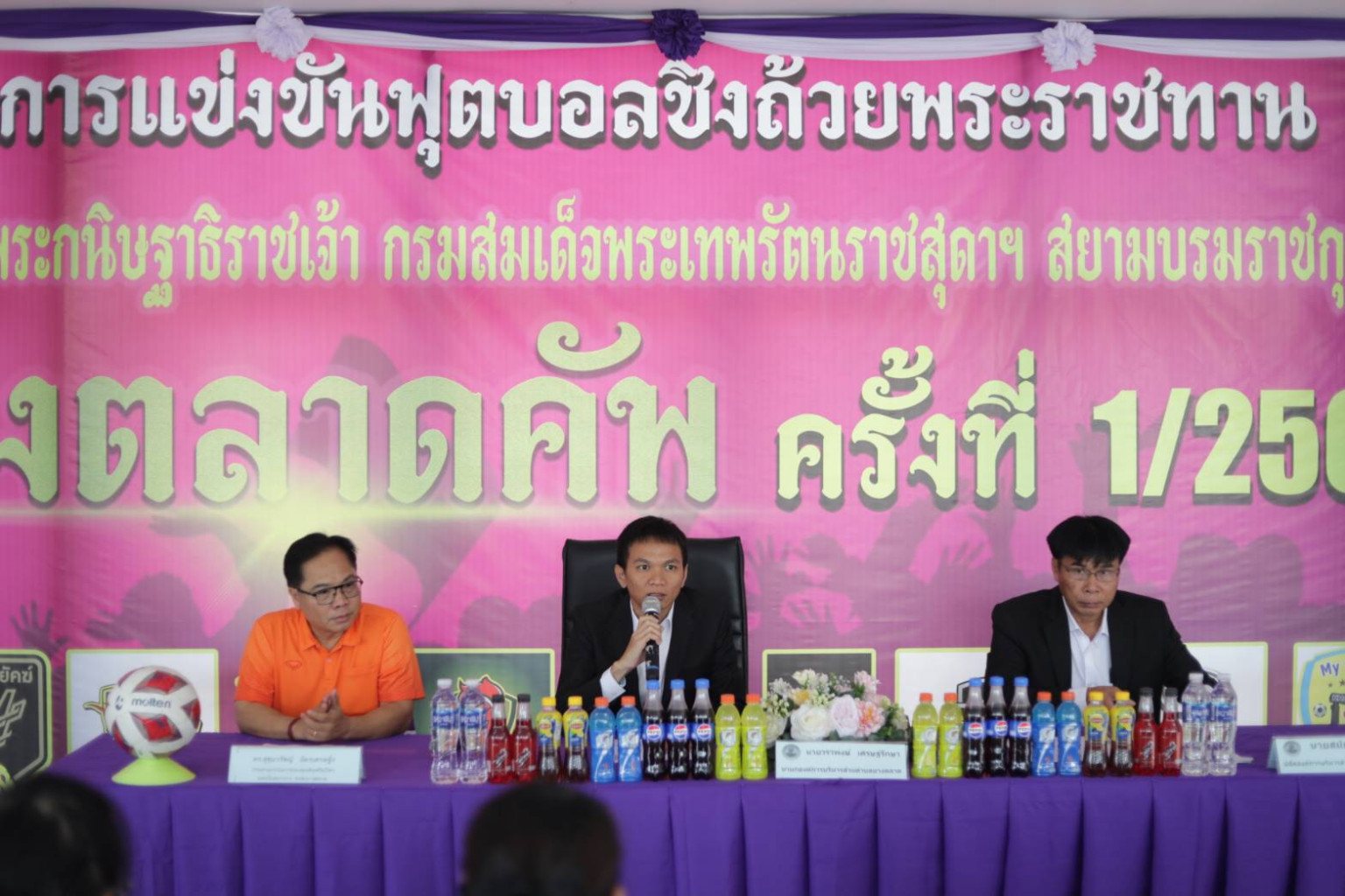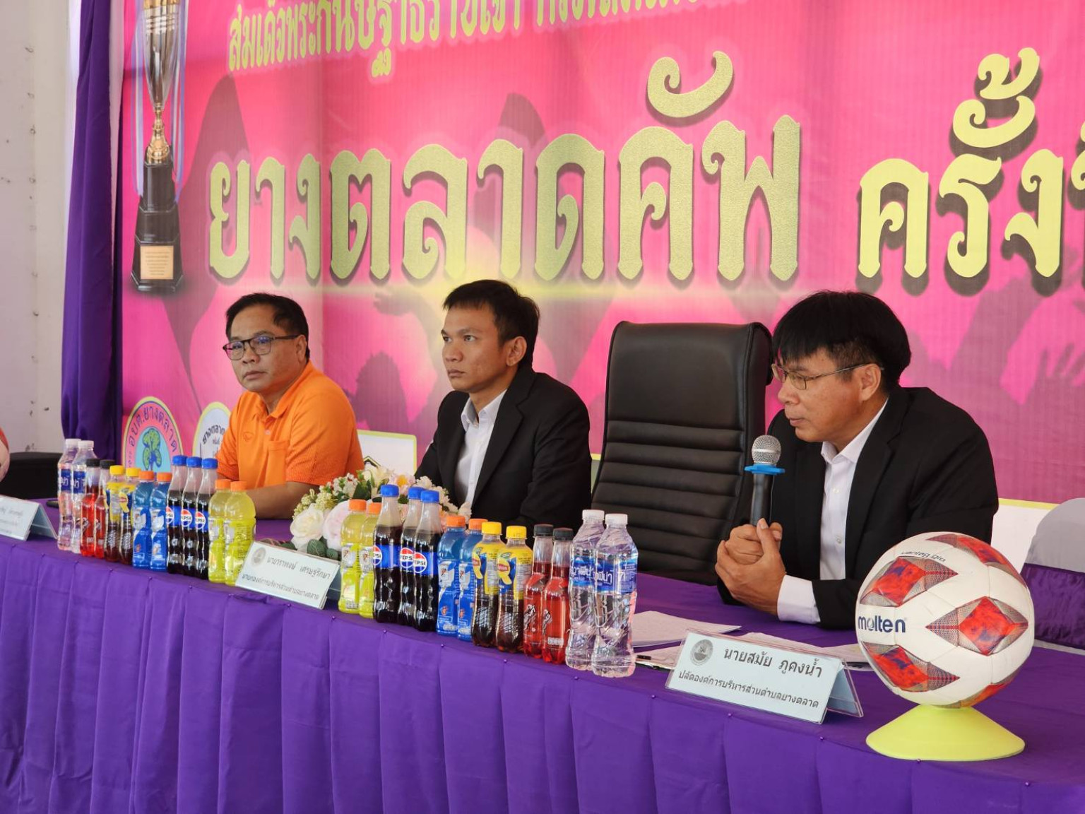 ทั้งนี้ ก่อนเปิดการแถลงข่าวและจับสลากแบ่งสายการแข่งขันฟุตบอลชิงถ้วยพระราชทานฯ นายวราพงษ์ เศรษฐ์รักษา นายก อบต.ยางตลาด เป็นประธานเปิดกรวยถวายราชสักการะ พระบรมฉายาลักษณ์สมเด็จพระกนิษฐาธิราชเจ้า กรมสมเด็จพระเทพรัตนราชสุดาฯ สยามบรมราชกุมารี ด้วยความสำนึกในพระมหากรุณาธิคุณ
