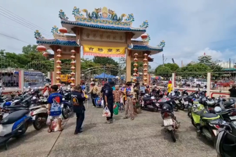 ยุคข้าวยาก หมากแพง ผู้คนจำนวนมากแห่เข้าคิวรอรับข้าวสาร อาหารแห้ง ในงานพิธิทิ้งกระจาด มูลนิธิสว่างบูชาธรรมสถาน อุบลราชธานี