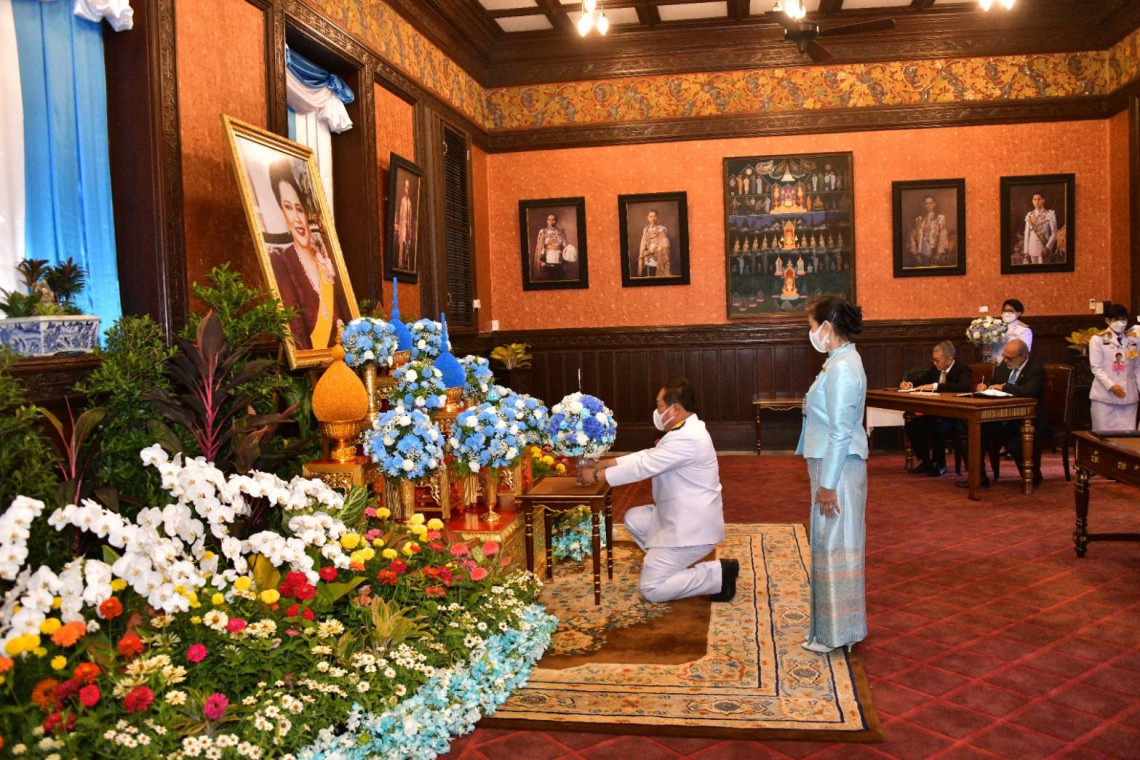 โดย พ.ต.อ.ทวี สอดส่อง รัฐมนตรีว่าการกระทรวงยุติธรรม พร้อมด้วย นางสุนีย์ สอดส่อง ภริยา ทูลเกล้าฯ ถวายแจกันดอกไม้เบื้องหน้าพระฉายาลักษณ์สมเด็จพระนางเจ้าสิริกิติ์ พระบรมราชินีนาถ พระบรมราชชนนีพันปีหลวง จากนั้น ลงนามถวายพระพร และถวายความเคารพพระฉายาลักษณ์ฯ เป็นอันเสร็จพิธี