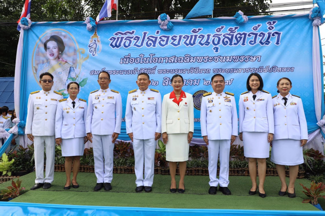 จากนั้นที่บริเวณท่าน้ำริมแม่น้ำเจ้าพระยา หน้าศาลากลางจังหวัดอ่างทอง ผู้ว่าราชการจังหวัดอ่างทอง นำทุกภาคส่วน ร่วมพิธีปล่อยพันธุ์สัตว์น้ำ เพื่อเป็นการถวายความจงรักภักดี และถวายเป็นพระราชกุศลแด่สมเด็จพระนางเจ้าสิริกิติ์ พระบรมราชินีนาถ พระบรมราชชนนีพันปีหลวง เนื่องในโอกาสวันเฉลิมพระชนมพรรษา 12 สิงหาคม 2567 จำนวน 300,000 ตัวและกุ้งก้ามกราม อีกจำนวนหนึ่ง โดยศูนย์วิจัยและพัฒนาประมงน้ำจืดอ่างทองร่วมกับสำนักงานประ มงจังหวัดอ่างทอง