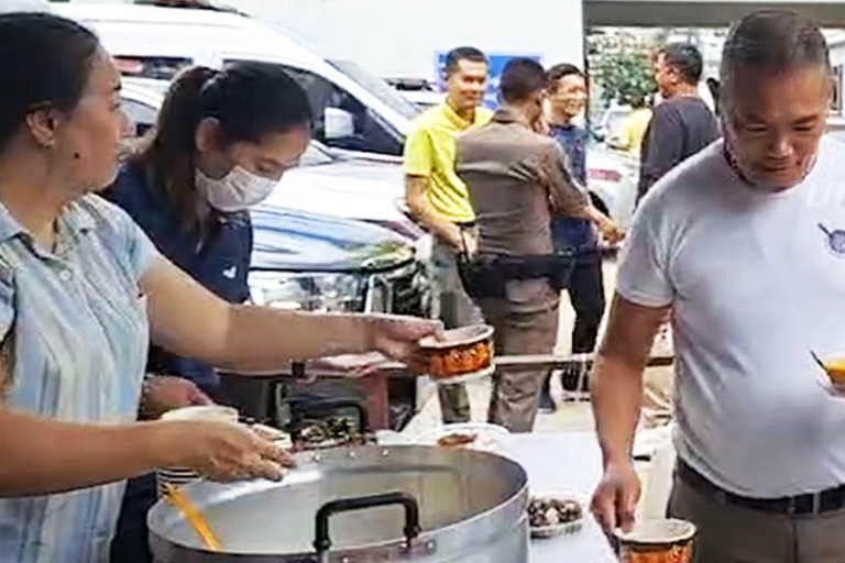 ที่สถานีตำรวจภูธรเมืองสมุทรสาคร นำโดย พ.ต.อ.พิเชษฐ์พงศ์ แจ้งค้ายคม ผู้กำกับการตำรวจภูธร สภ.เมืองสมุทรสาคร ได้จัดทำโครงการเลี้ยงอาหารกลางวัน ณ บริเวณร้านค้าสวัสดิการตำรวจ เพื่อบริการให้กับเจ้าหน้าที่ในสังกัด สภ.เมืองสมุทรสาคร โดยมีข้าราชการตำรวจ, พนักงานจ้าง และคนงาน ของทางสภ.เมืองสมุทรสาคร เข้าร่วมกิจกรรมกันอย่างพร้อมเพรียง
