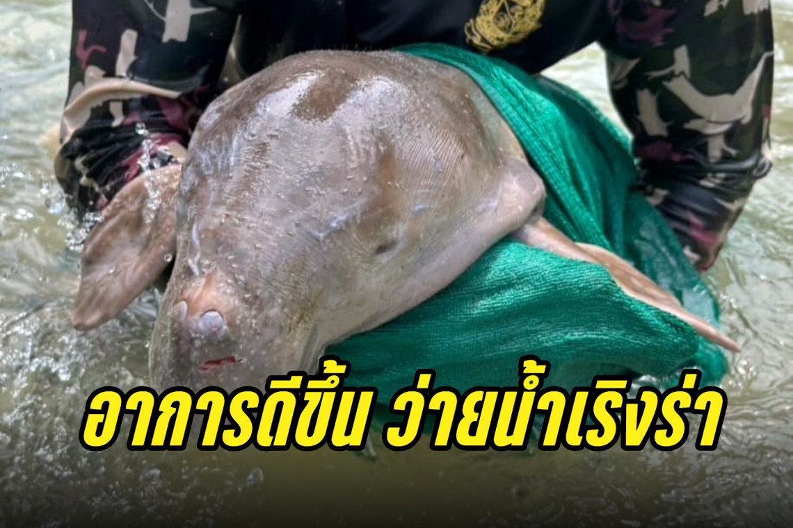 ทั้งนี้ เพจเฟซบุ๊ก กรมทรัพยากรทางทะเลและชายฝั่ง ได้โพสต์คลิปอัพเดท อาการน้องพะยูนเกยตื้น พร้อมระบุข้อความว่า...ตอนนี้ น้องพะยูนอาการดีขึ้น กินอิ่ม และเริ่มว่ายสำรวจบ่ออนุบาลฯ ค่ะ มาร่วมส่งกำลังใจให้พี่ๆ เจ้าหน้าที่ผู้ปฏิบัติงานทุกท่านที่ช่วยกันช่วยชีวิตและดูแลน้องพะยูนนะคะ