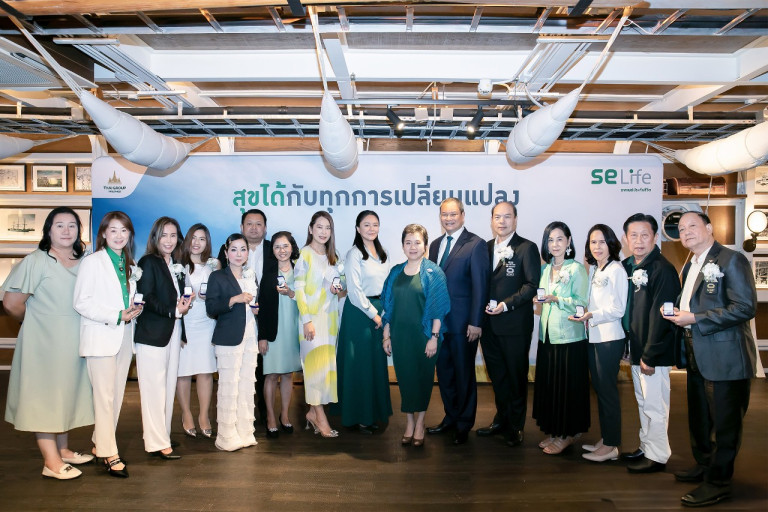 นายโชติพัฒน์ พีชานนท์ (คนที่ 6 จากขวา) ประธานกรรมการบริหาร และนางอาทินันท์ พีชานนท์ (คนที่ 7 จากขวา) รองประธานกรรมการบริหาร บริษัท ไทยกรุ๊ป โฮลดิ้งส์ จำกัด (มหาชน) ให้เกียรติมอบเข็มที่ระลึกแก่ตัวแทนและผู้บริหารงานขาย บริษัท อาคเนย์ประกันชีวิต จำกัด (มหาชน) หรือ SE Life หนึ่งในสายธุรกิจหลักของไทยกรุ๊ป โฮลดิ้งส์ กลุ่มธุรกิจประกันและการเงินในเครือทีซีซี ที่สามารถพิชิตคุณวุฒิมาตรฐานสากล MDRT 2025 ได้สูงสุดภายในช่วงไตรมาสแรกที่ผ่านมา โดยมีนางภฤตยา สัจจศิลา (คนที่ 9 จากซ้าย) กรรมการผู้จัดการ SE Life ร่วมแสดงความยินดีกับผู้พิชิตคุณวุฒิรวม 14 คน โดยมีนายกานต์ องค์สุวรรณ เป็นผู้พิชิต MDRT Honor Roll ระดับ COT (Court of the Table) ตอกย้ำแนวทางของบริษัทฯ ที่มีการวางแผนโครงสร้างที่สามารถเติบโตอย่างต่อเนื่อง มุ่งส่งเสริมตัวแทนและพัฒนาศักยภาพให้ไปสู่ระดับประเทศและระดับสากล