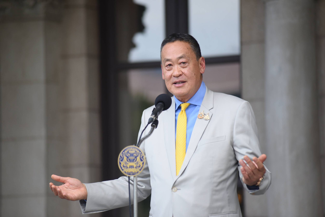 เมื่อเวลา 15.55 น. วันที่ 14 ส.ค. 67 นายเศรษฐา ทวีสิน อดีตนายกรัฐมนตรี แถลงข่าวภายหลังศาลรัฐธรรมนูญอ่านคำวินิจฉัยให้ นายเศรษฐา พ้นจากนายกฯ โดยนายเศรษฐา ได้เดินลงจากตึกไทยคู่ฟ้า มาแถลงที่บริเวณประตูด้านหน้าตึกไทยฯ มีนายจักรพงษ์ แสงมณี รักษาการรัฐมนตรีประจำสำนักนายกรัฐมนตรี นายสมคิด เชื้อคง รองเลขาธิการนายกรัฐมนตรี น.ส.นัทรียา ทวีวงศ์ ปลัดกระทรวงการท่องเที่ยวและกีฬา นายชัย วัชรงค์ โฆษกประจำสำนักนายกรัฐมนตรี และคณะทำงาน เดินลงมาพร้อมกัน