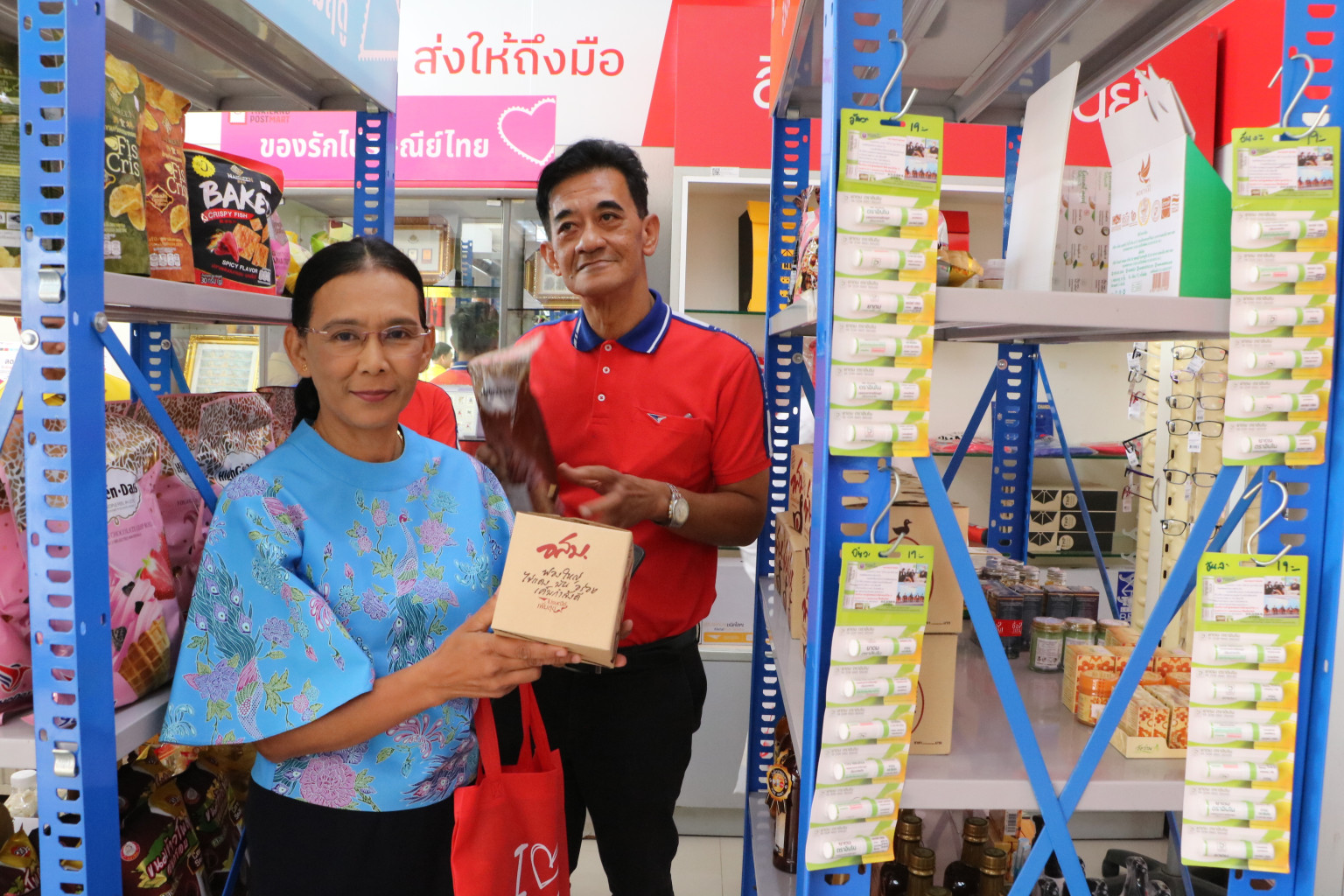 นายสุขพันธ์ บุญเหลือ หัวหน้าไปรษณีย์จังหวัดพังงา กล่าวว่า บริษัท ไปรษณีย์ไทย จำกัด ได้กำหนดแนวทางการดำเนินงานภายใต้โครงการ Retail & solutions ด้วยการจัดจำหน่ายสินค้าทั้งช่องทางออนไลน์ ผ่านเว็บไชต์ ThailandPostMart.com เพื่อเป็นการส่งเสริมการกระจายสินค้าจากชุมชนสู่คนไทย ซึ่งถือเป็นภารกิจสำคัญของไปรษณีย์ไทยในการช่วยเหลือชุมชนและสังคม ภายใต้วิสัยทัศน์ "ส่งมอบการเติบโตผ่านเครือข่ายไปรษณีย์"