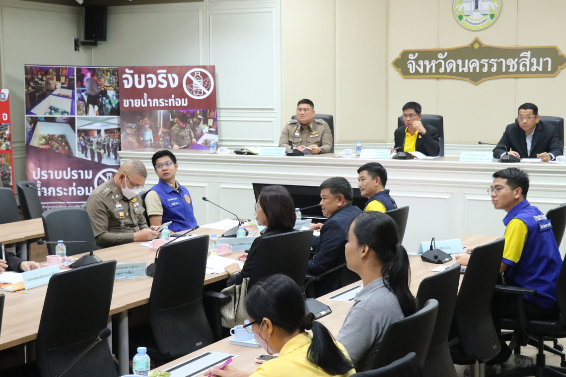 เมื่อวันที่ 14 สิงหาคม ที่ห้องประชุมหลวงพ่อคูณ ปริสุทโธ ชั้น 3 ศาลากลางจังหวัดนครราชสีมา นายสุรพันธ์ ศิลปสุวรรณ รอง ผวจ.นครราชสีมา พร้อม พ.ต.อ.คเชนท์ เสตะปุตตะ รองผู้บังคับการตำรวจภูธรจังหวัดนครราชสีมา นายไกรเลิศ ดาวเรือง ผู้อำนวยการสำนักงาน ปปส. ภาค 3 จัดประชุมชี้แจงแนวทางการดำเนินงานควบคุมการจำหน่ายน้ำต้มใบกระท่อม ในพื้นที่จังหวัดนครราชสีมา โดยศูนย์อำนวยการป้องกันและปราบปรามยาเสพติดจังหวัดนครราชสีมา (ศอ.ปส.จ.นม) มี พ.ต.อ.สุทธินันท์ คงแช่มดี ผกก.สภ.เมืองนครราชสีมา และหัวหน้าส่วนราชการที่เกี่ยวข้อง รายงานสถานการณ์ และร่วมกันทบทวนและต่อยอดแนวทางการดำเนินงานควบคุมการจำหน่ายน้ำต้มการจำหน่ายน้ำต้มใบกระท่อม ในพื้นที่จังหวัดนครราชสีมา