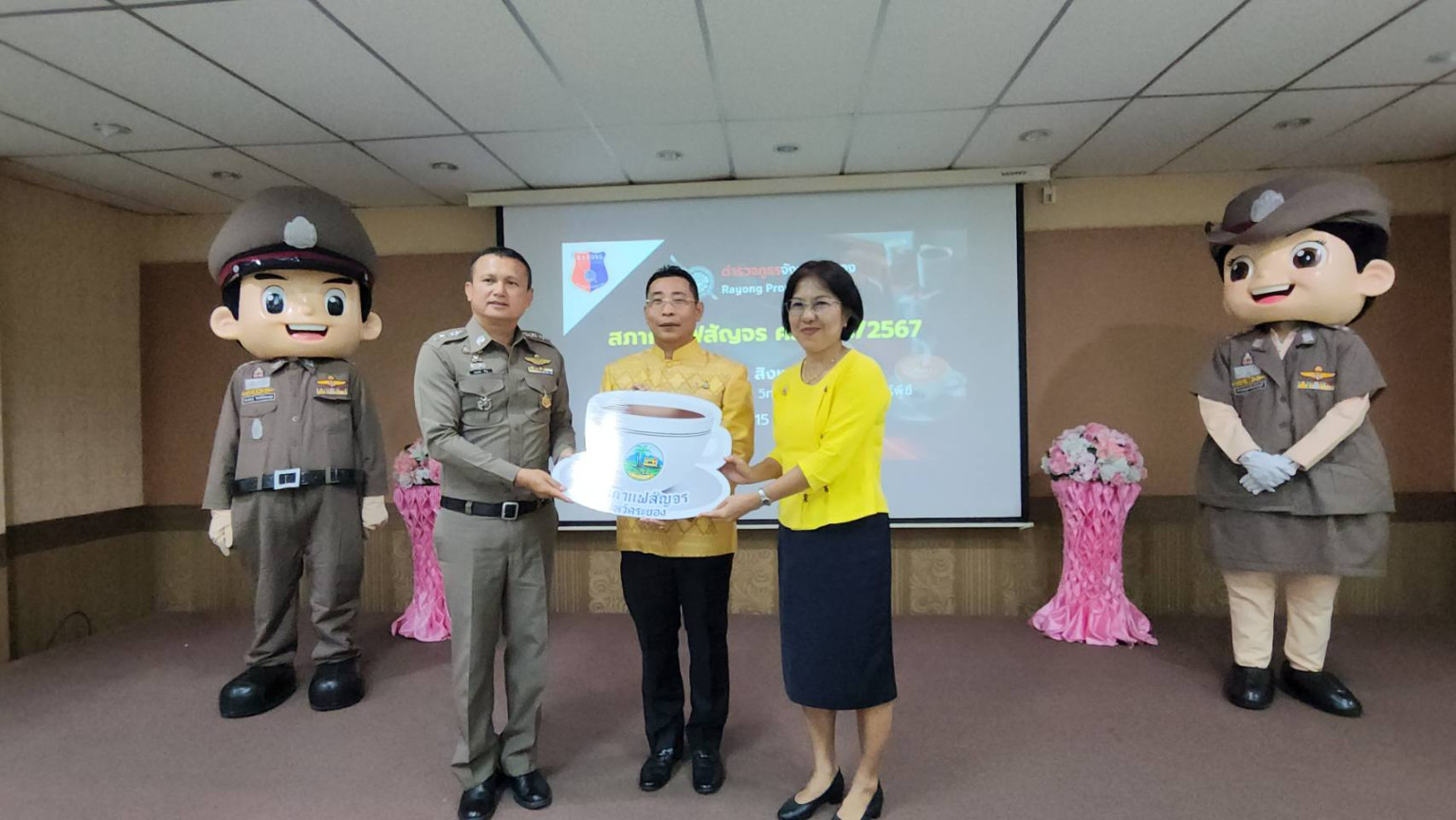 เมื่อเวลา 08.00 น. วันที่ 15 ส.ค.67 ที่ห้องประชุมวิทยาลัยเทคโนโลยีไออาร์พีซี ต.เชิงเนิน อ.เมือง จ.ระยอง นายไตรภพ วงศ์ไตรรัตน์ ผวจ.ระยอง เป็นประธานเป็นประธานเปิดกิจกรรมสภากาแฟสัญจร ครั้งที่ 8 ประจำปี 2567 โดยครั้งนี้ตำรวจภูธรจังหวัดระยอง เป็นเจ้าภาพ นำโดย พ.ต.อ.สมฤกษ์ ค้ำชู รอง ผบก.ระยอง ซึ่งได้รับมอบหมายจาก พล.ต.ต.พงษ์พันธ์ วงศ์มณีเทศ ผบก.ระยอง นำหัวหน้าสถานีตำรวจทุกแห่งให้การต้อนรับ ซึ่งการสภากาแฟสัญจร จะจัดขึ้นทุกวันพฤหัสบดีที่สามของเดือน