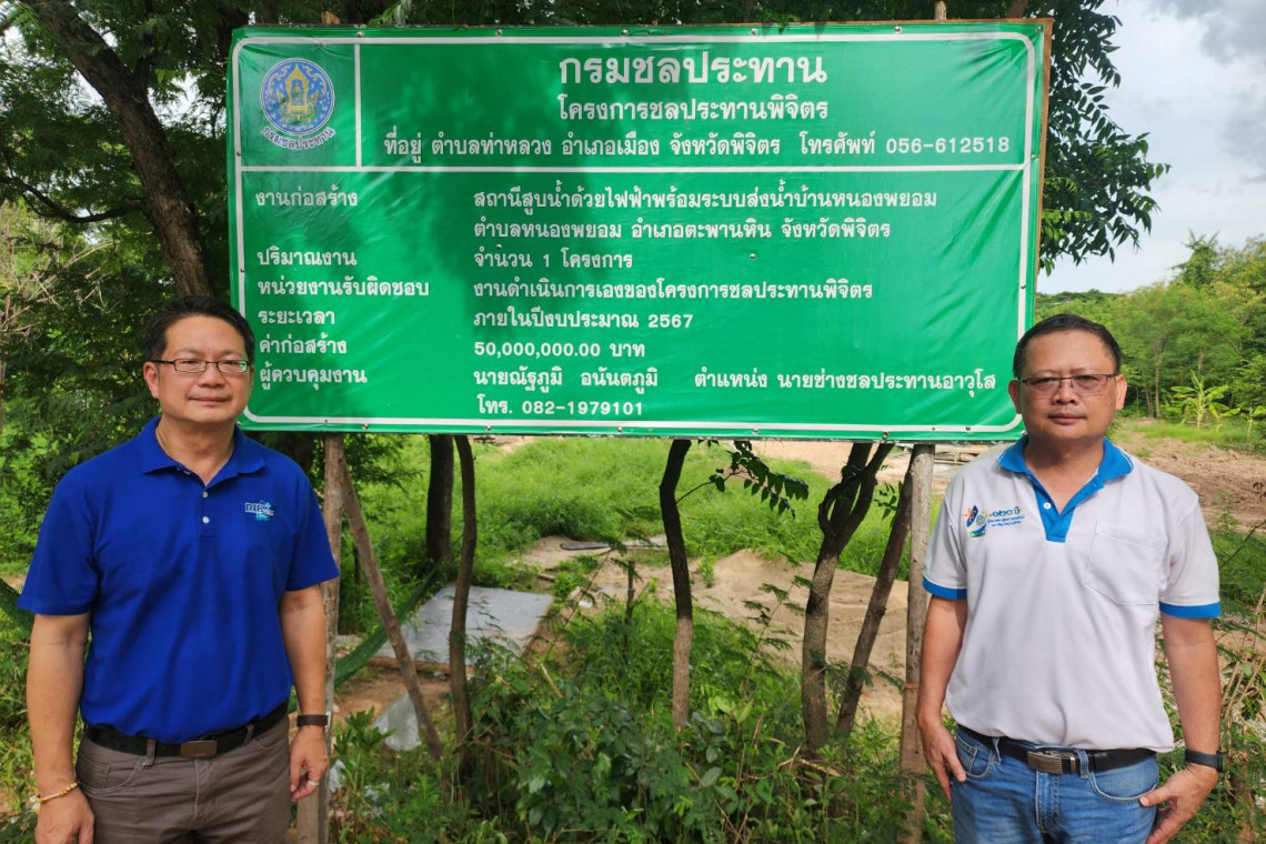 วันที่ 17 สิงหาคม 2567 นายฉัตรชัย ทองปอนด์ ชลประทานจังหวัดพิจิตร และ นายณัฐภูมิ อนันตภูมิ นายช่างชลประทานอาวุโส ร่วมกันลงพื้นที่เพื่อติดตามงานก่อสร้างสถานีสูบน้ำด้วยไฟฟ้าพร้อมระบบส่งน้ำบ้านหนองพยอม ซึ่งกรมชลประทานอนุมัติงบ 50 ล้านบาท เพื่อดำเนินการโครงการดังกล่าวในปีงบประมาณ 2567 โดยดำเนินการติดตั้งแพสูบน้ำเพื่อสูบน้ำจากแม่น้ำน่านที่ตำบลวังงิ้ว อ.ตะพานหิน จากนั้นเดินท่อส่งน้ำขนาดใหญ่เป็นระยะทาง 4,900 เมตร เพื่อสูบน้ำจากแม่น้ำน่านไปตามท่อส่งน้ำ และส่งน้ำไปยังพื้นที่เกษตรกรรม หมู่ 6 ต.หนองพยอม อ.ตะพานหิน โดยจะดำเนินการวางท่อลอดใต้ถนนและลอดใต้ทางรถไฟเพื่อส่งน้ำไปยังพื้นที่การเกษตรที่ตลอดระยะทางจะมีจุดเปิดน้ำ 20 จุด ซึ่งจะทำให้พื้นที่การเกษตรได้รับประโยชน์ ไม่น้อยกว่า 1,500 ไร่ แต่ถ้ากลุ่มเกษตรกรและองค์กรปกครองส่วนท้องถิ่นทำคลองไส้ไก่เพิ่มเติมเพื่อการกระจายน้ำก็จะสามารถทำให้มีพื้นที่ได้รับประโยชน์มากสูงสุดถึง 5,000 ไร่ อีกด้วย