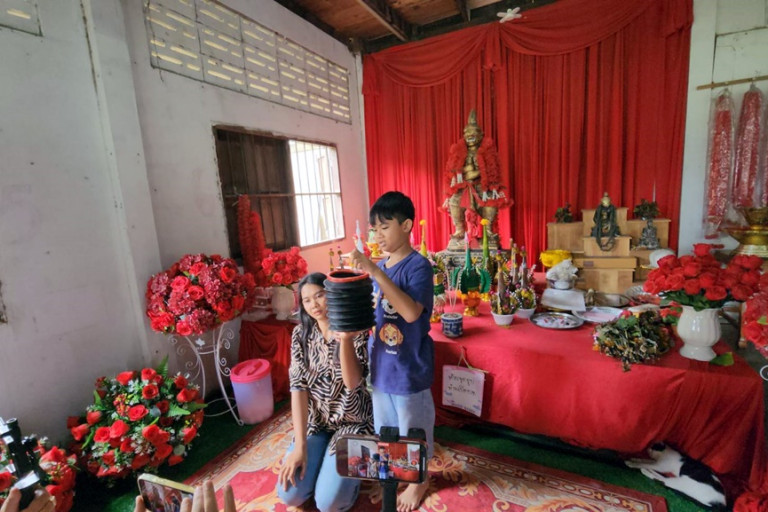 นางมัณฑนา เล่าอีกว่าเลขที่ตนนำไปเสี่ยงโชคได้มาจากลูกปิงปองที่ลูกชายหยิบให้ บริเวณหน้าองค์ปู่เวสอภิวรรณรวยทันใจ ในสำนักหมอดูเทวดา วันนี้จึงได้นำสิ่งของเดินทางมาถวายและขอโชคลาภกับปู่อีก