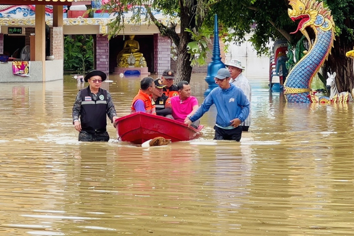 ด้าน อ.พญาเม็งราย ซึ่งมีพื้นที่ลุ่มคือ ต.แม่เปา น้ำจากลำน้ำแม่ต๊ากและน้ำแม่เปาได้เข้าท่วมหมู่ 2 หมู่ 4 หมู่ 6 หมู่ 11 หมู่ 13 หมู่ 14 หมู่ 15 หมู่ 16 หมู่ 18 หมู่ 20 ต.แม่เปา มีบ้านเรือนประชาชนถูกนำท่วมประมาณ 540 ครัวเรือน มีประชากรได้รับผลกระทบกว่า 1,820 คน ถนนทางการเกษตรถูกน้ำกัดเซาะ 19 จุด ซึ่งนายประเสริฐ์ จิตต์พลีชีพ รองผู้ว่าราชการ จ.เชียงราย นายชูสวัสดิ์ สวัสดี นายอำเภอพญาเม็งราย ส่วนท้องถิ่นและหน่วยงานที่เกี่ยวข้องได้ลงพื้นที่ช่วยเหลือชาวบ้านโดยเฉพาะที่หมู่บ้านสบเปาใหม่และวัดบุญวาทย์ ตั้งอยู่พื้นที่หมู่4 และหมู่บ้านทุ่งเจ้า หมู่ที่ 15 ต.แม่เปา พบว่าน้ำระบายได้ช้าทำให้ทรงตัวสร้างผลกระทบทั้งพระสงฆ์และชาวบ้าน โดยเฉพาะภายในวัดน้ำยังลึกกว่า 1 เมตรและมีพระสงฆ์จำพรรษาอยู่ 4 รูป ซึ่งต้องใช้การนั่งเรือออกไปปฏิบัติศาสนกิจต่างๆ นอกจากนี้ยังมีที่หมู่ 2 และหมู่ 11 ต.เม็งราย ด้วย