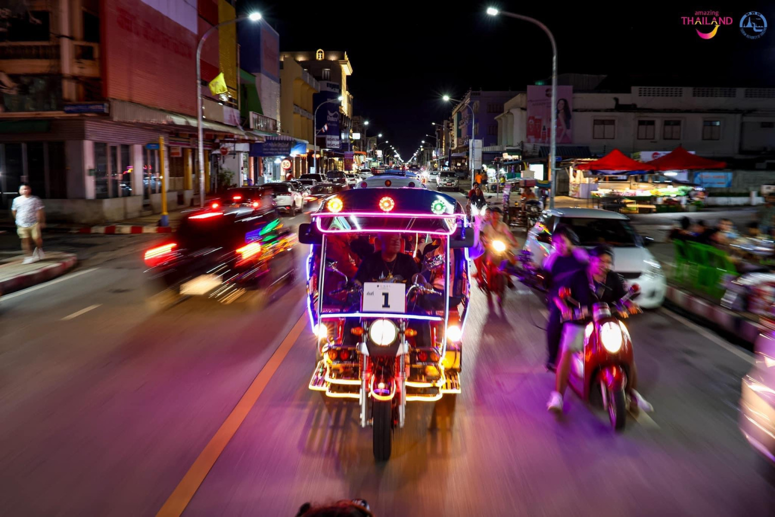 ผู้สื่อข่าวรายงาน ว่า เมื่อวันที่ 17 สิงหาคม 2567 ณ ลานเฉลิมพระเกียรติสมเด็จพระเทพรัตนราชสุดาฯ 60 พรรษา(อนุสาวรีย์ปราบฮ่อ) อ.เมืองหนองคาย นายสมภพ สมิตะสิริ ผู้ว่าราชการจังหวัดหนองคาย เป็นประธานเปิดกิจกรรม “สามล้อเรืองแสง...เลาะแลง แยงเมืองหนองคาย” โดยการท่องเที่ยวแห่งประเทศไทย (ททท.) สำนักงานอุดรธานี ร่วมกับจังหวัดหนองคาย สมาคมส่งเสริมการท่องเที่ยวจังหวัดหนองคาย และสภาอุตสาหกรรมท่องเที่ยวจังหวัดหนองคาย ได้จัดกิจกรรมเปิดเส้นทาง "สามล้อเรืองแสง...เลาะแลงแยงเมืองหนองคาย"เพื่อนำเสนอกิจกรรมการท่องเที่ยวจังหวัดหนองคายในยามค่ำคืนโดยใช้รถสามล้อสกายแลป เป็นพาหนะในการท่องเที่ยว