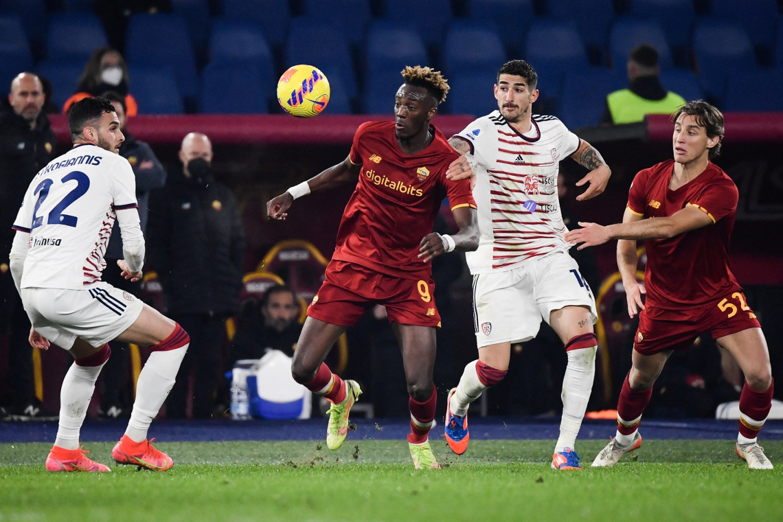 ที่สนาม ยูนิโปล ดูมุส ประเทศอิตาลี ในการแข่งขันฟุตบอลกัลโช่ เซเรีย อา ฤดูกาล 2024-2025 คืนวันที่ 18 ส.ค.67 ระหว่างทีม "กาญารี่" พบกับทีม "โรม่า" เริ่มเกมการแข่งขัน นาทีที่ 20 รูปเกมตึงเครียด กาญารี่ พอมีโอกาสโดย ลูวอมโบ้ ตัดยิงนอกกรอบข้ามคาน ฝั่ง โรม่า ได้ตอบโต้ด้วยฟรีคิกแต่เจาะแนวรับไม่ได้