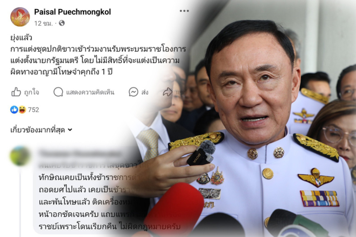 จากนั้ได้มีชาวเน็ตเข้ามาแสดงความคิดเห็นกันอย่างมากมาย โดย ชาวเน็ตบางรายมีความเห็นแย้งโดยระบุข้อความ อาทิ "คนเคยรับข้าราชการใส่ชุดขาวได้ครับทักษิณเคยเป็นทั้งข้าราชการตำรวจแต่โดนถอดยศไปแล้ว เคยเป็นข้าราชการการเมือง และพ้นโทษแล้ว ติดเครื่องหมายน.ก.ที่หน้าอกชัดเจนครับ แถบแพรก็ไม่มีตราเครื่องราชย์เพราะโดนเรียกคืน ไม่ผิดกฎหมายครับ", "ประเทศนี้ไม่ต้องก้าวไปไหนละครับ หาเรื่องทะเลาะกัน จับผิดกันในเรื่องเล็กๆน้อยๆ ไร้สาระไปวันๆ แทนที่จะมาแข่งกันว่าใครจะมีความคิดมีวิสัยทัศน์ที่จะพัฒนาประเทศชาติได้ดีกว่ากัน แล้วให้ประชาชนเป็นผู้ตัดสินใจเลือกไปตามระบอบประขาธิปไตย ทำไม่ดี 4 ปีก้อว่ากันใหม่"