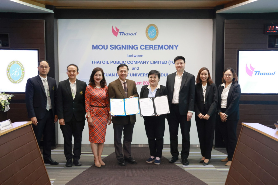 มหาวิทยาลัยสวนดุสิต โดยหลักสูตรวิทยาศาสตร์เครื่องสำอาง คณะวิทยาศาสตร์และเทคโนโลยี และบริษัท ไทยออยล์ จำกัด (มหาชน) ลงนามบันทึกข้อตกลงความร่วมมือทางวิชาการ โดยได้รับเกียรติจาก ผศ.ดร.พิทักษ์ จันทร์เจริญ รักษาการแทนอธิการบดีมหาวิทยาลัยสวนดุสิต และ นางสาวดวงพร ธีรภาพไพสิฐ ตำแหน่ง Head of Innovation, Research & Development And High Value Business เป็นผู้ลงนามบันทึกข้อตกลงความร่วมมือทางวิชาการ โดยมีผู้บริหาร และบุคลากรจากสองหน่วยงานเข้าร่วมในพิธี ณ บริษัท ไทยออยล์ จำกัด (มหาชน) สำนักงานตั้งอยู่เลขที่ 555/1 ศูนย์เอนเนอรยี่คอมเพล็กซ์ อาคารเอ ชั้น 11 ถนนวิภาวดีรังสิต แขวงจตุจักร เขตจตุจักร กรุงเทพมหานคร 10900