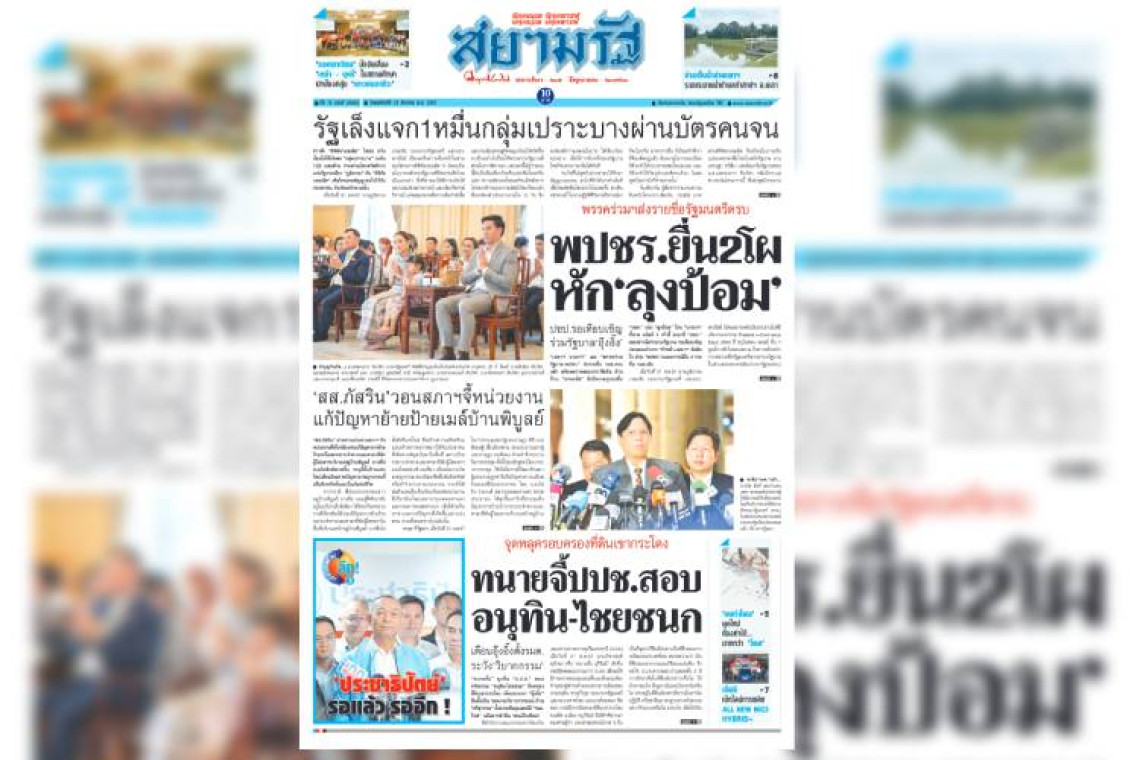 หน้า 1 หนังสือพิมพ์สยามรัฐรายวัน ฉบับวันพฤหัสบดีที่ 22 สิงหาคม 2567