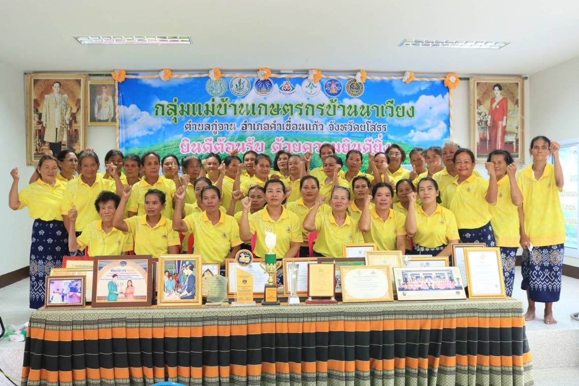 นายนพดล ผุดผ่องจังหวัดยโสธรเปิดเผยว่าการคัดเลือกกลุ่มเกษตรกรในครั้งนี้เพื่อเผยแพร่ผลงาน ยกย่องเชิดชูเกียรติ ให้เป็นที่ปรากฏแก่สาธารณชน สร้างความภาคภูมิใจในการสืบทอดอาชีพด้านการเกษตร ตลอดจนสร้างขวัญและกำลังใจ ในการพัฒนากลุ่มแม่บ้านเกษตรกรต่อไป โดยกลุ่มแม่บ้านเกษตรกรบ้านนาเวียง ตำบลกู่จาน อำเภอคำเขื่อนแก้ว จังหวัดยโสธร มีการดำเนินกิจกรรมอย่างต่อเนื่อง เริ่มตั้งแต่ ปี พ.ศ. 2530 จนถึงปัจจุบัน โดยสมาชิกกลุ่มแม่บ้านเกษตรกรบ้านนาเวียง ส่วนใหญ่ประกอบอาชีพเกษตรกรรมและมีการรวมกลุ่มในชุมชนเป็นกลุ่มแม่บ้านเกษตรกร ดำเนินกิจกรรมแปรรูปผลผลิตทางการเกษตร และเพื่อสร้างอาชีพเสริม เพิ่มรายได้ให้แก่ครอบครัว
