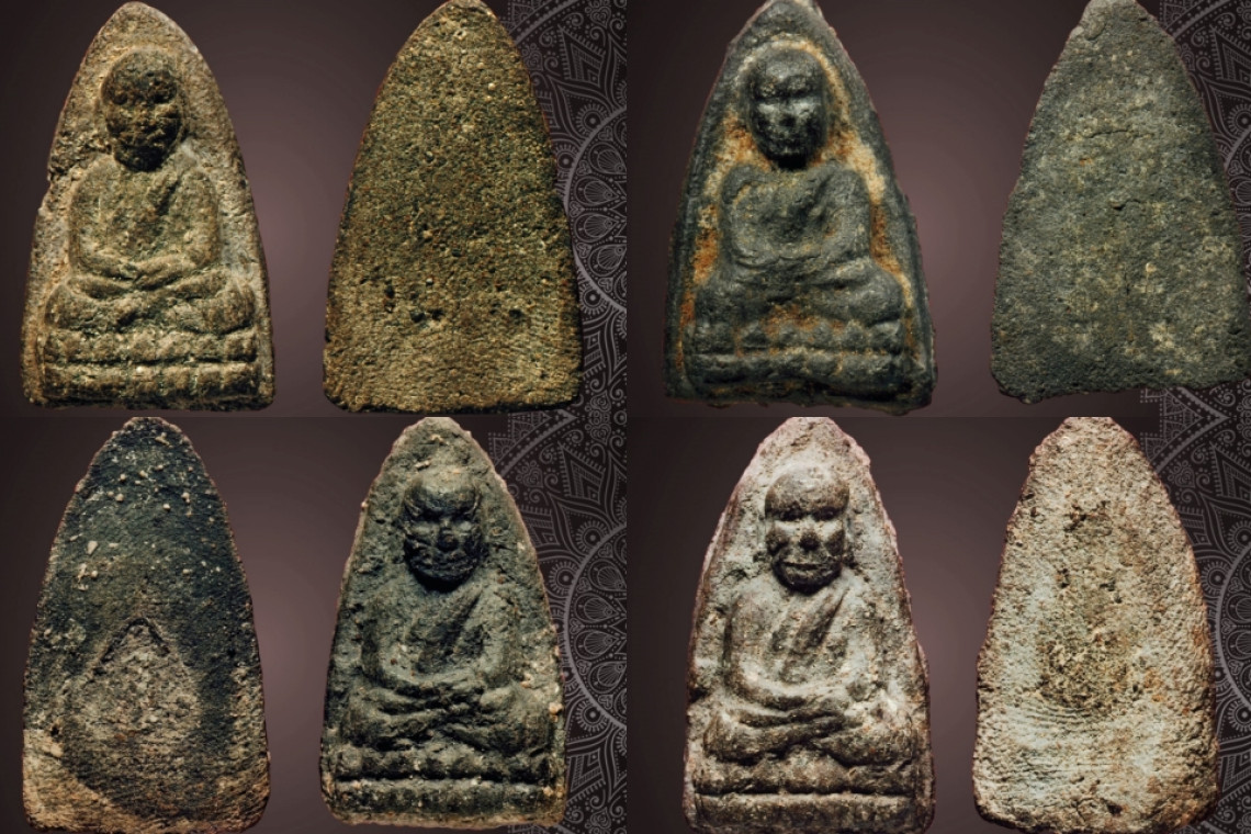องค์พระมีหลากหลายสี ถ้าเป็นกรรมการจะออกสีดำ ส่วนพิมพ์ทั่วไปจะออก สีเทานวล แต่จะพบเห็นสีแดงนวลบ้างเข้าใจว่าเป็นเพราะผสมว่านสบู่เลือดลงไปมาก ส่วนใต้ฐาน (ก้น) จะมีรอยก้านไม้ไผ่เสียบเป็นรูสี่เหลี่ยมผืนผ้าเล็กๆ บางองค์ใช้ก้านธูป เสียบขึ้นมาจากแม่พิมพ์ ทำให้รูมีลักษณะกลม ส่วนบางองค์ผู้กดใช้นิ้วหัวแม่มือ กับนิ้วชี้บีบสองข้างด้านล่างบริเวณฐานจึงไม่มีรู แต่มีรอยบีบเล็กน้อย และมวลสาร ที่ส่อง จะพบเห็นเม็ดคล้ายอิฐแดงบดละเอียด สันนิษฐานว่าอาจเป็นเศษพระ ซุ้มกอเม็ดสีขาวบดละเอียด หรือ เศษสมเด็จหลวงปู่ภู และเม็ดแร่สีดำทองเรียก "แร่กิมเซียว" องค์พระเมื่อนำออกจากแม่พิมพ์ก็จะใช้นิ้วกดเม็ดแร่กิมเซียว