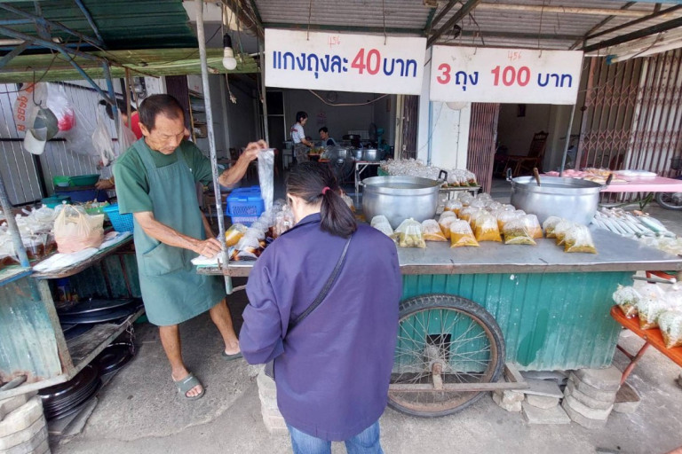ด้านลูกค้าชายรายหนึ่ง กล่าวว่า เป็นราคาที่คุ้มค่า มาซื้อกินประจำ ถ้าที่ร้านไม่ขายตนก็ไม่ได้กินข้าว รสชาติดีและยังใส่ให้เท่าเดิมทุกอย่างแถมยังมีหมู มีไก่ เท่ากับแกงถุง 50 บาทเลยอิ่มและคุ้มจริงๆ