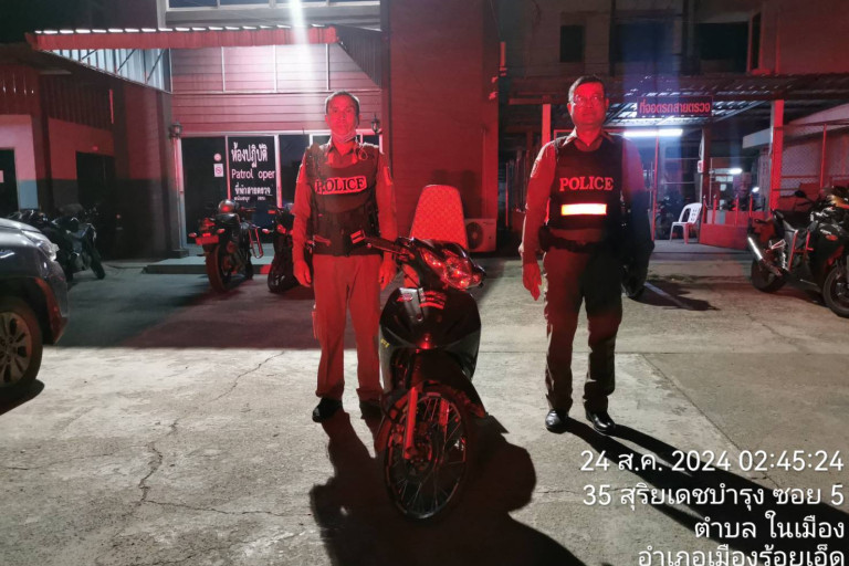 วันที่ 24 สิงหาคม 2567 โดยการอำนวยการของ พ.ต.อ.ชลิต ศรีหานู ผกก.สภ.เมืองร้อยเอ็ด พ.ต.ท.เนติวุธ สุดหนองบัว รอง ผกก.ป.สภ.เมืองร้อยเอ็ด สั่งการให้ พ.ต.ต.ชนินทร์ บุญสา สวป.สภ.เมืองร้อยเอ็ด ร.ต.อ.เชิดเกียรติ จันทร์เพชร รอง สวป.สภ.เมืองร้อยเอ็ด ร้อยเวรพร้อมชุดสายตรวจรถจักรยานยนต์ชุดที่ 3 ออกตรวจกวดขันกลุ่มรถจักรยานยนต์ มั่วสุมก่อความเดือดรำคาญในเขตรับผิดชอบ ตรวจยึด จักรยานยนต์ จำนวน 1คัน ดัดแปลงสภาพรถ ไม่มีสำเนาคู่มือจดทะเบียนรถ จึงได้ทำการตรวจยึดเพื่อตรวจสอบเอกสารการครอบครอง และหลักฐานอื่นๆ