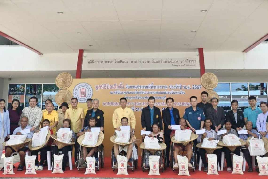 มูลนิธิป่อเต็กตึ๊งจัดพิธีแจกข้าวสารพร้อมเครื่องอุปโภคบริโภค เนื่องในประเพณีทิ้งกระจาด ประจำปี 2567 ให้กับประชาชนผู้ยากไร้ที่อาศัยอยู่ในพื้นที่ใกล้เคียงคลินิกการประกอบโรคศิลปะ สาขาการแพทย์แผนจีนหัวเฉียว สาขาศรีราชา จำนวน 2,800 ชุด สิ่งของที่แจกประกอบด้วย ข้าวสาร บะหมี่กึ่งสำเร็จรูป ปลากระป๋อง น้ำปลา น้ำมันพืช และขนม บรรจุถุงผ้ามูลนิธิฯ พร้อมมอบค่าพาหนะคนละ 100 บาท