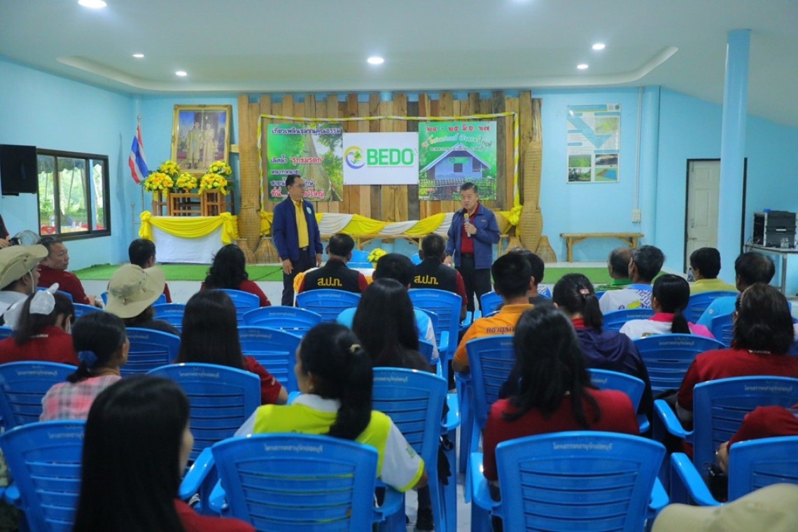 นายตระกูล สว่างอารมณ์ เกษตรกรในเขตปฏิรูปที่ดินจังหวัดชลบุรี กล่าวว่า ตนได้รับการจัดสรรที่ดินจาก ส.ป.ก.จำนวน 50 ไร่ เดิมทีในพื้นที่ได้มีการปลูกพืชเศรษฐกิจ เช่น ปลูกอ้อย มันสำปะหลัง แต่เนื่องด้วยสภาพดินมีความเสื่อมโทรม ทำให้ผลผลิตตกต่ำ รายได้ที่ลดลง จึงได้หันมาปลูกยางพารา และแซมด้วยการปลูกพืชสมุนไพร อาทิ ขาไก่ดำ ตะไคร้ และอีกมากมาย สำนักงานการปฏิรูปที่ดินได้มีการเข้ามาส่งเสริม แก้ไขปัญหา และพัฒนาองค์ความรู้ในโครงการพัฒนาธุรกิจชุมชนในเขตปฏิรูปที่ดิน เพื่อพัฒนาเกษตรกรด้านทักษะอาชีพทั้งในภาคการเกษตรและนอกภาคเกษตร โดยส่งเสริมการรวมกลุ่มในรูปแบบวิสาหกิจชุมชน ให้เกษตรกรในพื้นที่ปฏิรูปที่ดิน ตำบลพลวงทอง อำเภอบ่อทอง จังหวัดชลบุรี ส่งเสริมให้ปลูกพืชสมุนไพร เพื่อเพิ่มรายได้ นอกจากนี้ยังเป็นศูนย์เรียนรู้ป่าชุมชนที่มีประโยชน์แก่ลูกหลานในอนาคต ในเรื่องการปลูกป่าและเป็นแหล่งเรียนรู้ให้แก่คนในชุมชนและประชาชนทั่วไป