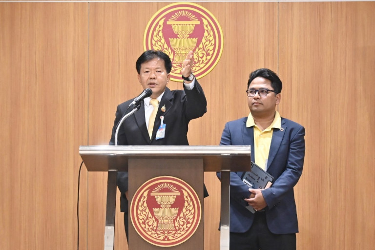 “เหตุการณ์ที่เกิดขึ้น ไม่ได้เกิดจากอิฐที่ผนังถล่ม แต่เป็นอิฐที่รื้อออกมาแล้วกองไว้ บนนั่งร้านหล่นลงมาทางสำนักอาคารสถานที่ได้การประสานจากผู้รับจ้างให้ตรวจเช็ค เหล็กแฟลตบาร์ ตรงผนังมอญ จุดไหนที่มีปัญหาลักษณะเดียวกัน ให้แก้ไข ซึ่งปัญหาที่เกิดขึ้นผู้รับเหมาเป็นผู้รับผิดชอบเพราะยังอยู่ในช่วงระยะเวลาการรับประกัน 2 ปี หลังจากรับมอบงานมา”เลขาธิการสภาฯ กล่าว