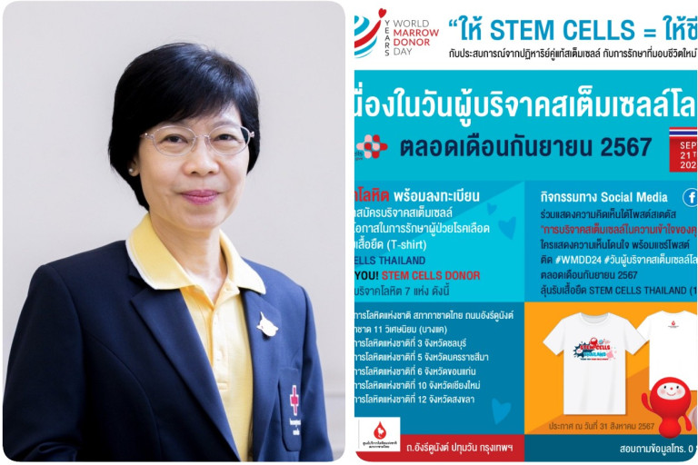 รองศาสตราจารย์ แพทย์หญิงดุจใจ ชัยวานิชศิริ ผู้อำนวยการศูนย์บริการโลหิตแห่งชาติ สภากาชาดไทย เปิดเผยว่า จากการที่องค์กร World Marrow Donor Association (WMDA) กำหนดให้วันเสาร์ที่ 3 ของเดือนกันยายนของทุกปี เป็นวันผู้บริจาคเซลล์ต้นกำเนิดเม็ดโลหิตโลก (World Marrow Donor Day) ในปีนี้ตรงกับวันเสาร์ที่ 21 กันยายน 2567 โดยจัดขึ้นเป็นครั้งแรกในปี พ.ศ. 2558 มีมากกว่า 61 ประเทศ ร่วมจัดกิจกรรมเพื่อเป็นการขอบคุณผู้บริจาคเซลล์ต้นกำเนิดเม็ดโลหิต และอาสาสมัครบริจาคเซลล์ต้นกำเนิดเม็ดโลหิตหรือสเต็มเซลล์ทั่วโลก อีกทั้ง เพื่อเฉลิมฉลองความสำเร็จของการจัดหาอาสาสมัครบริจาคสเต็มเซลล์กว่า 41 ล้านคน ทั่วโลก ซึ่งทั่วโลกยังมีผู้ป่วยที่ขึ้นทะเบียนรอรับการปลูกถ่ายสเต็มเซลล์มากกว่า 30,000 รายต่อปี