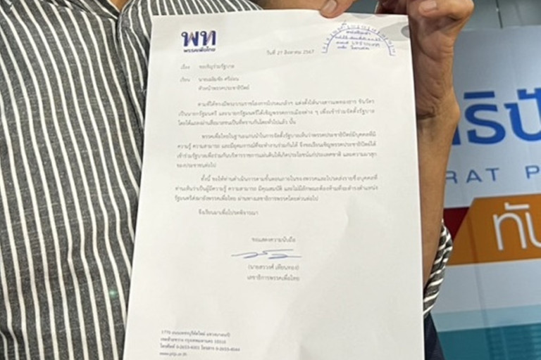 ทั้งนี้ ขอให้ท่านดำเนินการตามขั้นตอนภายในของพรรคและโปรดส่งรายชื่อบุคคลที่ท่านเห็นว่าเป็นผู้มีความรู้ ความสามารถ มีคุณสมบัติ และไม่มีลักษณะต้องห้ามที่จะดำรงตำแหน่งรัฐมนตรีส่งมายังพรรคเพื่อไทย ผ่านทางเลขาธิการพรรคโดยด่วนต่อไป