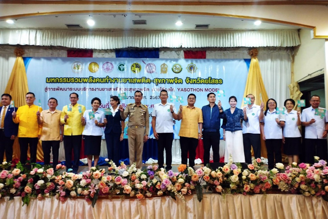 และในปี 2567 ขับเคลื่อนการพัฒนาคุณภาพชีวิต (พชอ.) จากภาคีเครือข่ายทุกหน่วยงานในจังหวัดยโสธร ด้วยกลไก YASOTHON MODEL จัดระบบริการด้านบำบัดรักษาและฟื้นฟูสมรรถภาพผู้ป่วยยาเสพติดและสุขภาพจิต ในระบบ Pre -Hospital in-Hoppital และ Post- Hospital และส่งต่อดูแลต่อเนื่องในศูนย์ฟื้นฟูสภาพทางสังคม สำนักงานสาธารณสุขจังหวัดยโสธร จึงจัดทำโครงการมหกรรมรวมพลังคนทำงานยาเสพติด-สุขภาพจิต สู่การพัฒนาระบบบริการงานยาเสพติดและสุขภาพจิตภายใต้กลไก YASOTHON MODEL จังหวัดยโสธร ปีงบประมาณ พ.ศ. 2567 ขึ้น โดยมีวัตถุประสงค์เพื่อแลกเปลี่ยนเรียนรู้และสรุปผลการดำเนินงานการจัดระบบบริการด้านบำบัดรักษาและฟื้นฟูสมรรถภาพผู้ป่วยยาเสพติดและสุขภาพจิต แสดงผลงานทางวิชาการผลงานวิจัย R2R ด้านการจัดระบบบริการด้านบำบัดรักษาและฟื้นฟูสมรรถภาพผู้ป่วยยาเสพติดและสุขภาพจิต และมอบโล่ประกาศเกียรติคุณบุคคลและองค์กรที่มีผลงานยอดเยี่ยมและดีเด่นในการป้องกันและแก้ไขปัญหายาเสพติดจังหวัดยโสธรโดยกลุ่มเป้าหมายประกอบด้วยภาคีเครือข่ายที่เกี่ยวข้องจากกระทรวงมหาดไทยศึกษาธิการ และสาธารณสุข9อำเภอในจังหวัดยโสธร