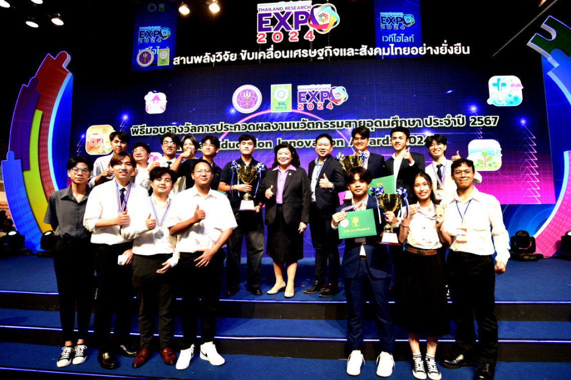 สำนักงานการวิจัยแห่งชาติ (วช.) กระทรวงการอุดมศึกษา วิทยาศาสตร์ วิจัยและนวัตกรรม โดย ดร.วิภารัตน์ ดีอ่อง ผู้อำนวยการสำนักงานการวิจัยแห่งชาติ มอบรางวัลผลงานนวัตกรรมสายอุดมศึกษา ประจำปี 2567 ระดับปริญญาตรี และระดับบัณฑิตศึกษา ภายในงาน “มหกรรมงานวิจัยแห่งชาติ 2567 : Thailand Research Expo 2024” ณ เวทีกิจกรรม Highlight Stage ห้องบางกอกคอนเวนชันเซ็นเตอร์ ชั้น 22 โรงแรมเซ็นทาราแกรนด์ และบางกอกคอนเวนชันเซ็นเตอร์ เซ็นทรัลเวิลด์ กรุงเทพฯ