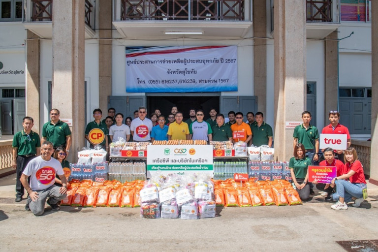ขณะเดียวกัน ที่ จ.น่าน บริษัทฯ มอบวัตถุดิบสำหรับปรุงอาหาร ได้แก่ เนื้อไก่ เนื้อหมู ไข่ไก่ น้ำดื่มซีพี ข้าวตราฉัตร อาหารพร้อมรับประทาน รวมถึงสิ่งของที่จำเป็น อาทิ ถุงยังชีพและเครื่องอุปโภคบริโภค รถโมบายสัญญาณทรู 5G สำหรับโรงครัว 10 แห่ง ของกลุ่มแม่บ้านจิตอาสา เพื่อแจกจ่ายให้ผู้ได้รับผลกระทบจากน้ำท่วมใน 4 อำเภอ ได้แก่ อ.เมืองน่าน อ.ภูเพียง อ.ท่าวังผา และ อ.เวียงสา