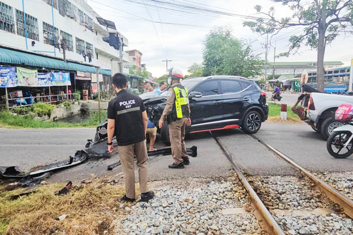 “รถไฟมหาชัย” ชนเก๋งแล่นตัดหน้า พังยับเยิน-โชคดีรอดหวุดหวิด