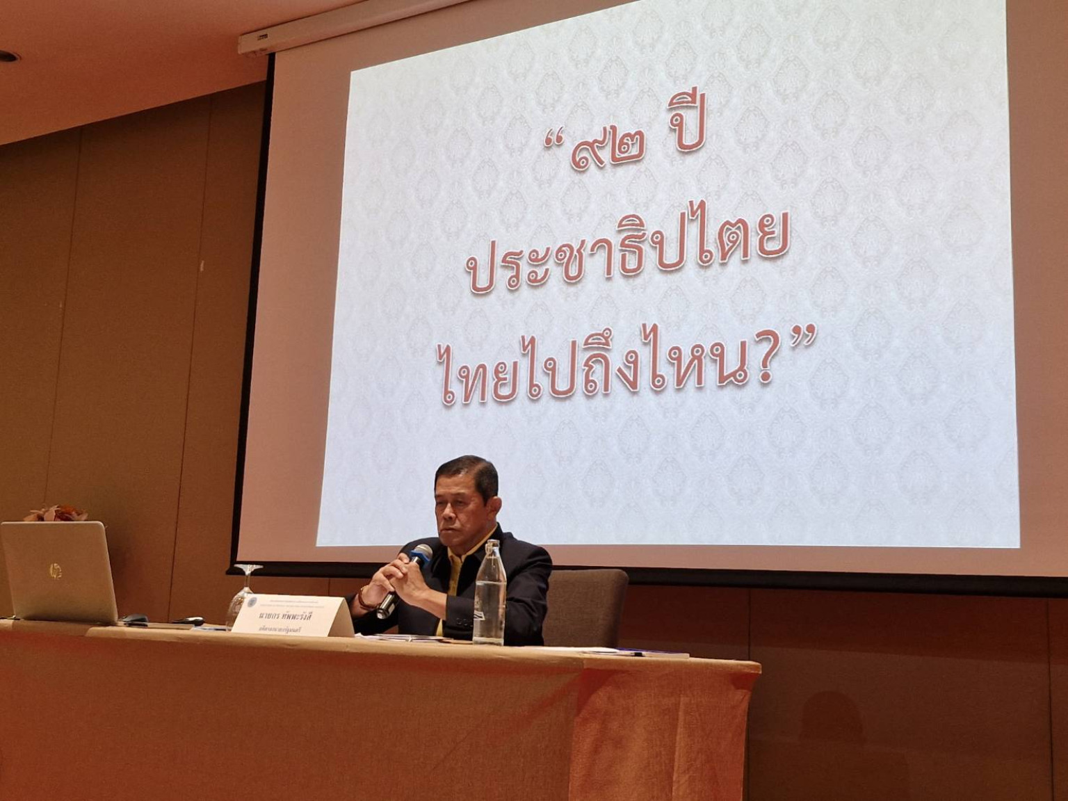 นายกร กล่าวว่า 92 ปี ประชาธิปไตย ประเทศไทยยังวนอยู่ที่เดิมเริ่มตั้งแต่มีรัฐธรรมนูญ เลือกตั้ง เปิดสภา ตั้งรัฐบาล รัฐบาลทำงาน เดินขบวน และสุดท้ายจบที่การปฏิวัติ เป็นแบบนี้มาเรื่อยๆ มีรัฐธรรมนูญ 20 ฉบับ เลือกตั้ง 29 ครั้ง ปฏิวัติ 12 ครั้ง แม้กระทั่งช่วงปี 2531-2534 ในช่วงรัฐบาลนายชาติชาย ชุณหะวัณ ที่มีการเติบโตทางเศรษฐกิจมากที่สุด ไม่มีการเดินประท้วงรัฐบาล ก็ยังมีการปฏิวัติ อย่างไรกตามในช่วงที่ประเทศไทยใกล้ถึงทางตัน ทหารมีการไล่ต้อนนักศึกษา รัชกาลที่ 9 ทรงเปิดพระราชวังสวนจิตรลดาให้นักศึกษาเข้าไปพักพิง ทำอาหารเลี้ยง และรับฟังความต้องการ รวมถึงปัญหาต่างๆที่เกิดขึ้น และดำเนินการแก้ไขทันที จึงทำให้เห็นว่ายามใดที่ประเทศไทยมีปัญหาพระมหากษัตริย์มีคำตอบ