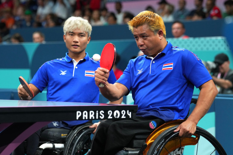 วันที่ 29 ส.ค. 2567 การแข่งขันเทเบิลเทนนิส พาราลิมปิกเกมส์ 2024 ณ South Paris Arena 4 ประเภทชายคู่ คลาส MD8 “ขวด” วันชัย ชัยวุฒิ และ”เป้”ยุทธจักร กลิ่นบานชื่น คู่มือหนึ่งของรายการ รอบ 16 คู่ เอาชนะ ฮาเวียร์ โลเปซ ฟรานซิสโก และ เอแดร์ โรดริเกซ คู่มือ 9 จากสเปน 3 เกมรวด 11-2 11-0 และ 11-8 ผ่านเข้ารอบ 8 คู่สุดท้ายพบ SAITO Genki และ SHICHINO Kazuki มือ 7 ของรายการจากญี่ปุ่นในวันพรุ่งนี้